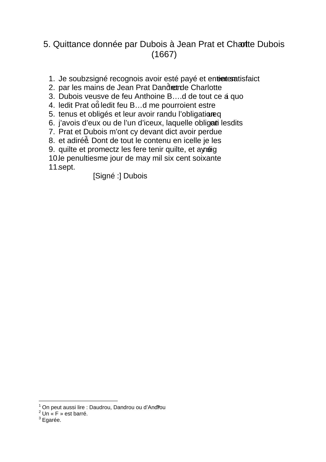 Quittance donnée par Dubois à Jean Prat et Charlotte Dubois (1667)