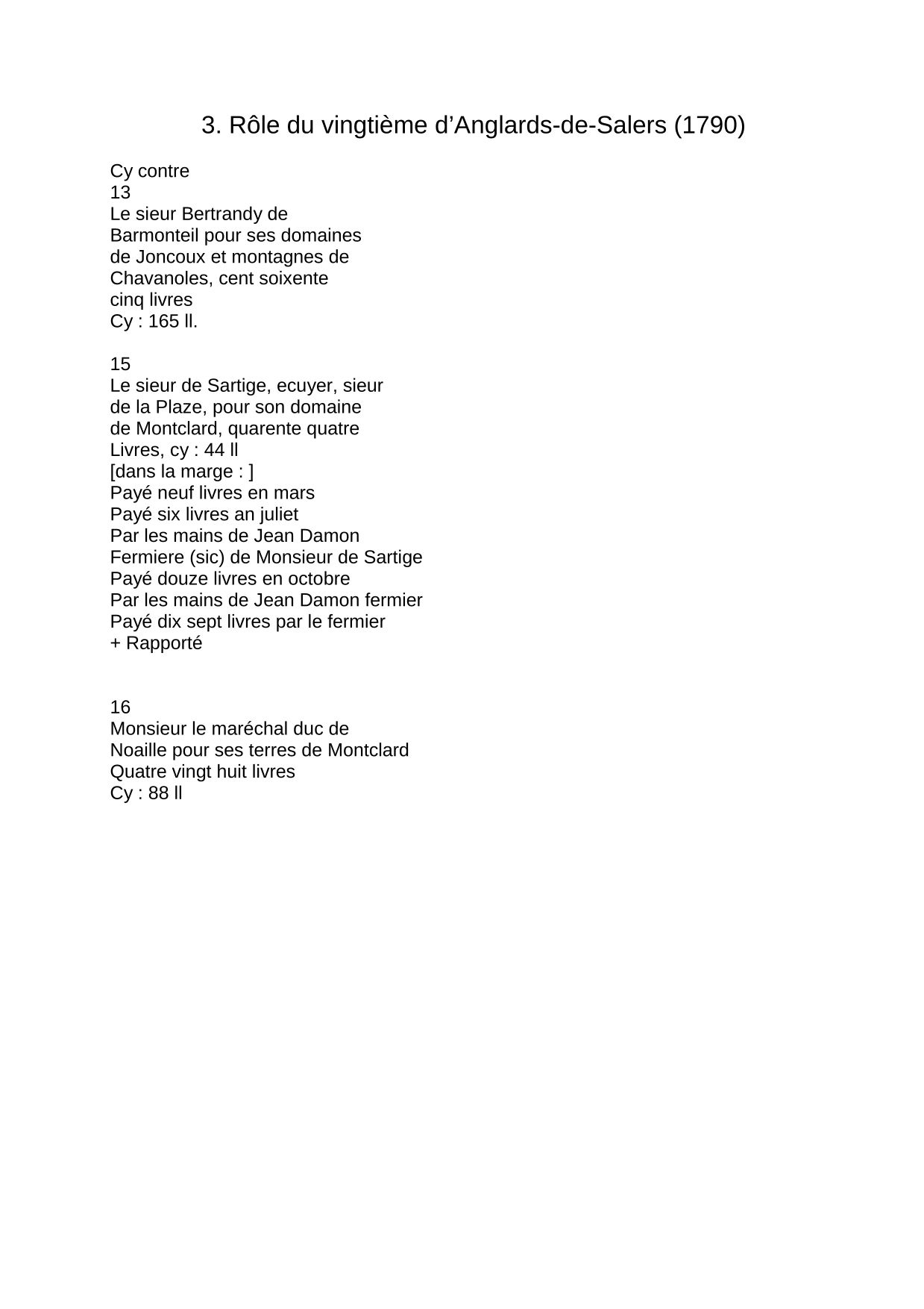 Rôle du vingtième d'Anglards-de-Salers (1790)