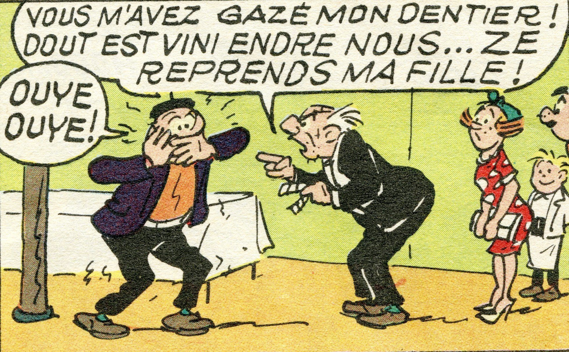 La comparaison entre Juifs et Auvergnats n’est certes pas nouvelle ; on la trouve déjà sous la plume de Balzac (Le cousin Pons, 1846). Mais, vingt-cinq ans après la découverte des camps d’extermination, une telle publication ne semble pas avoir ému le public. Quarante ans plus tard, il y a fort à parier que l’opinion publique, que Tintin au Congo (1931) indispose, réagirait aujourd’hui avec véhémence à ces lieux communs d’un goût douteux.