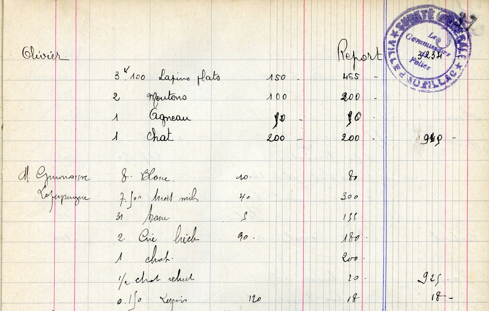 Chaque registre, paraphé par le commissariat de police de la ville, porte le nom des acheteurs et des vendeurs, décrit la marchandise (tissu, cheveux, capsules, métal, peaux d’animaux, plume, cuir, os, soies de porc, tricot, lapins plats ou lapins ronds, papier, etc.) et en donne le prix d’achat.