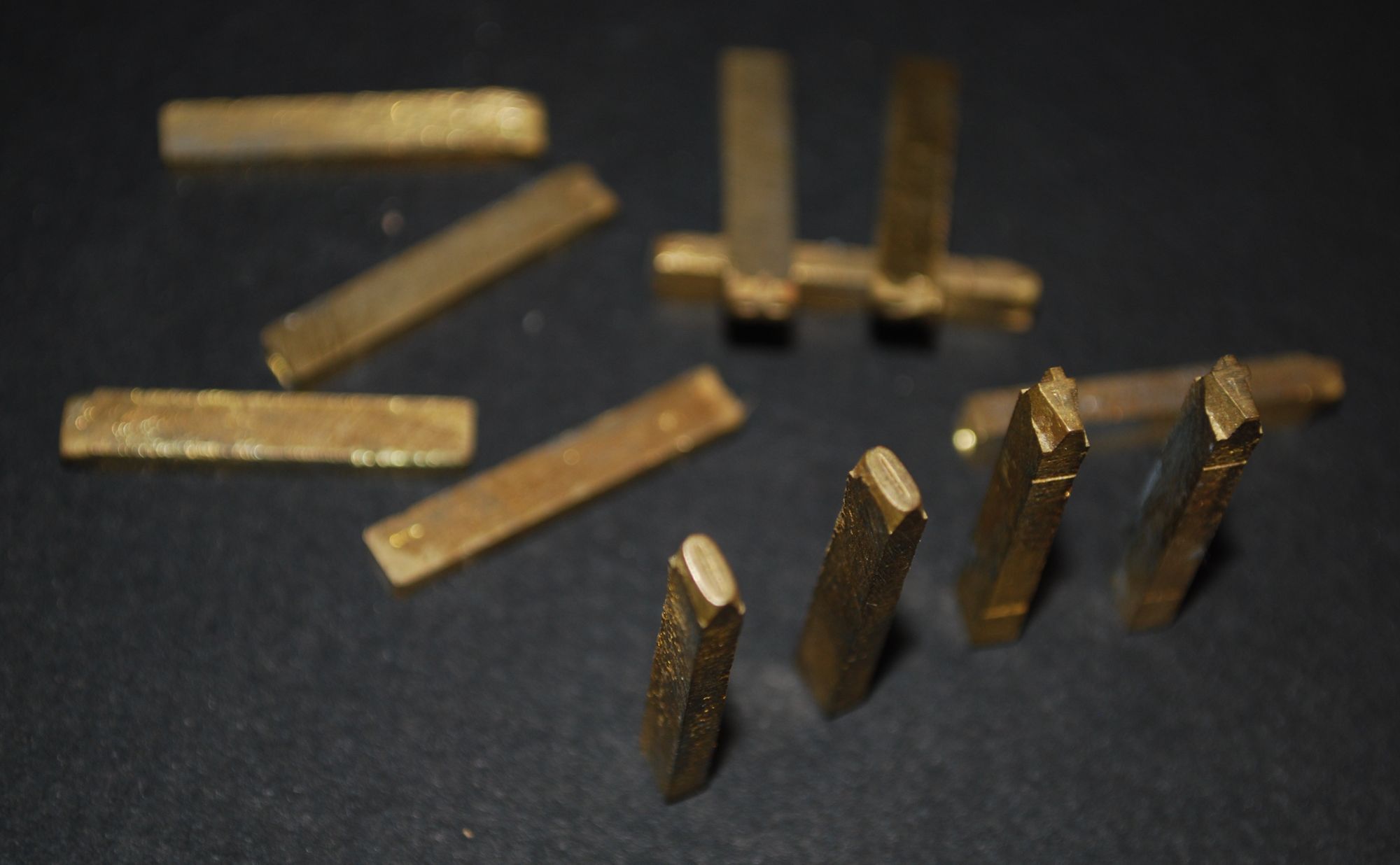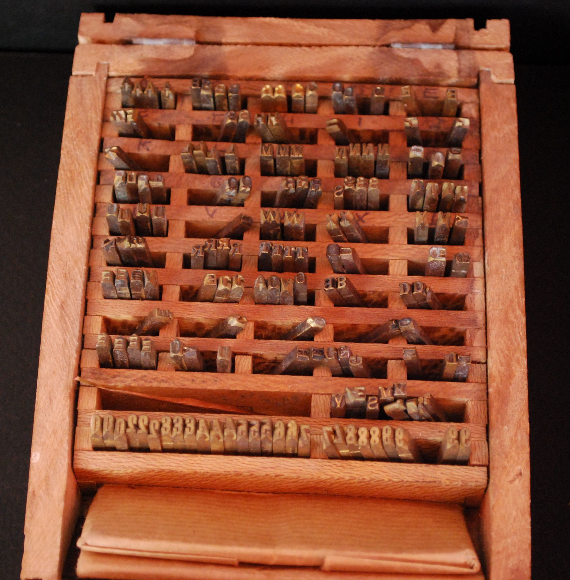 Les Archives départementales du Cantal ont acquis début 2013 en vente publique une casse de doreur de la maison Rougier et Plé (Paris, XXe siècle). Les caractères sont ici en laiton (et non en plomb, qui se déformerait au martelage, surtout couplé avec un chauffage).