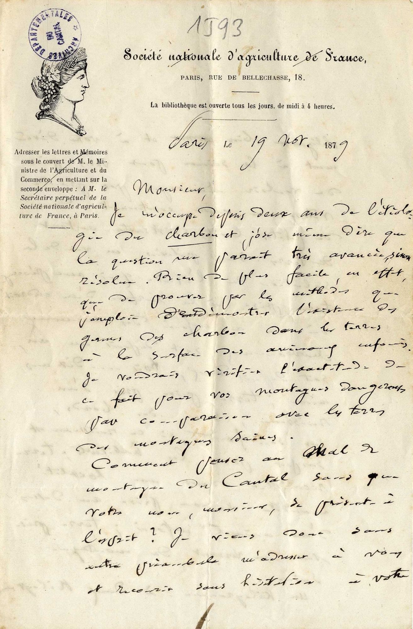 Lettre de Louis Pasteur au vétérinaire Pierre Marret (1879)