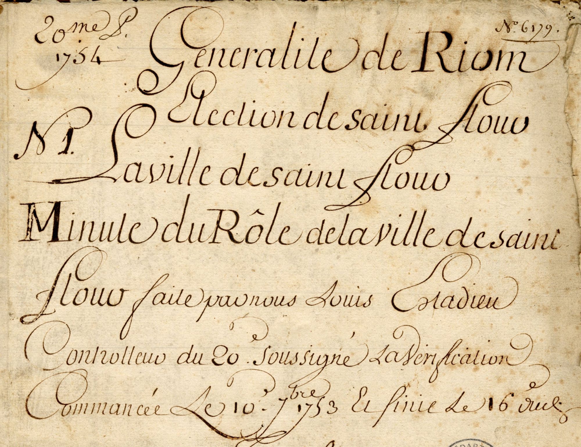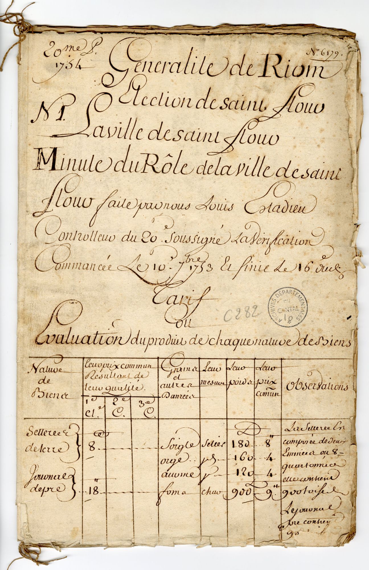 Rôle du vingtième de la paroisse de Saint-Flour (1753)