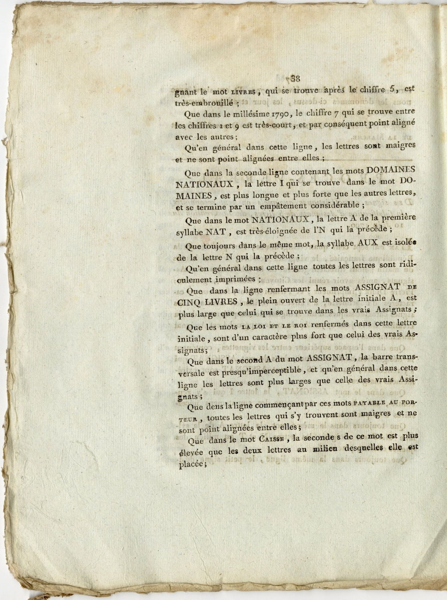 Vrai ou faux assignat ? Signes caractéristiques de falsification.