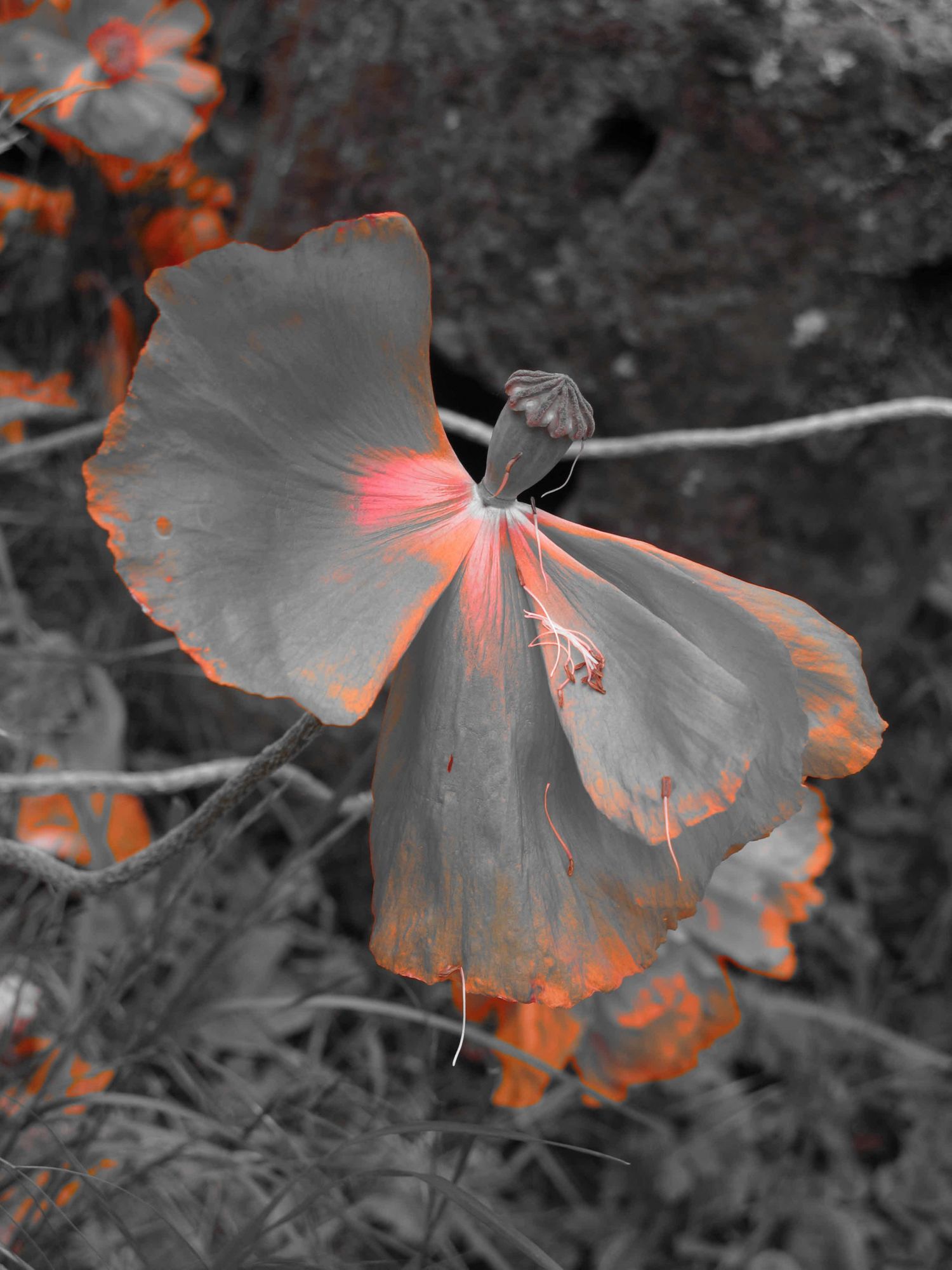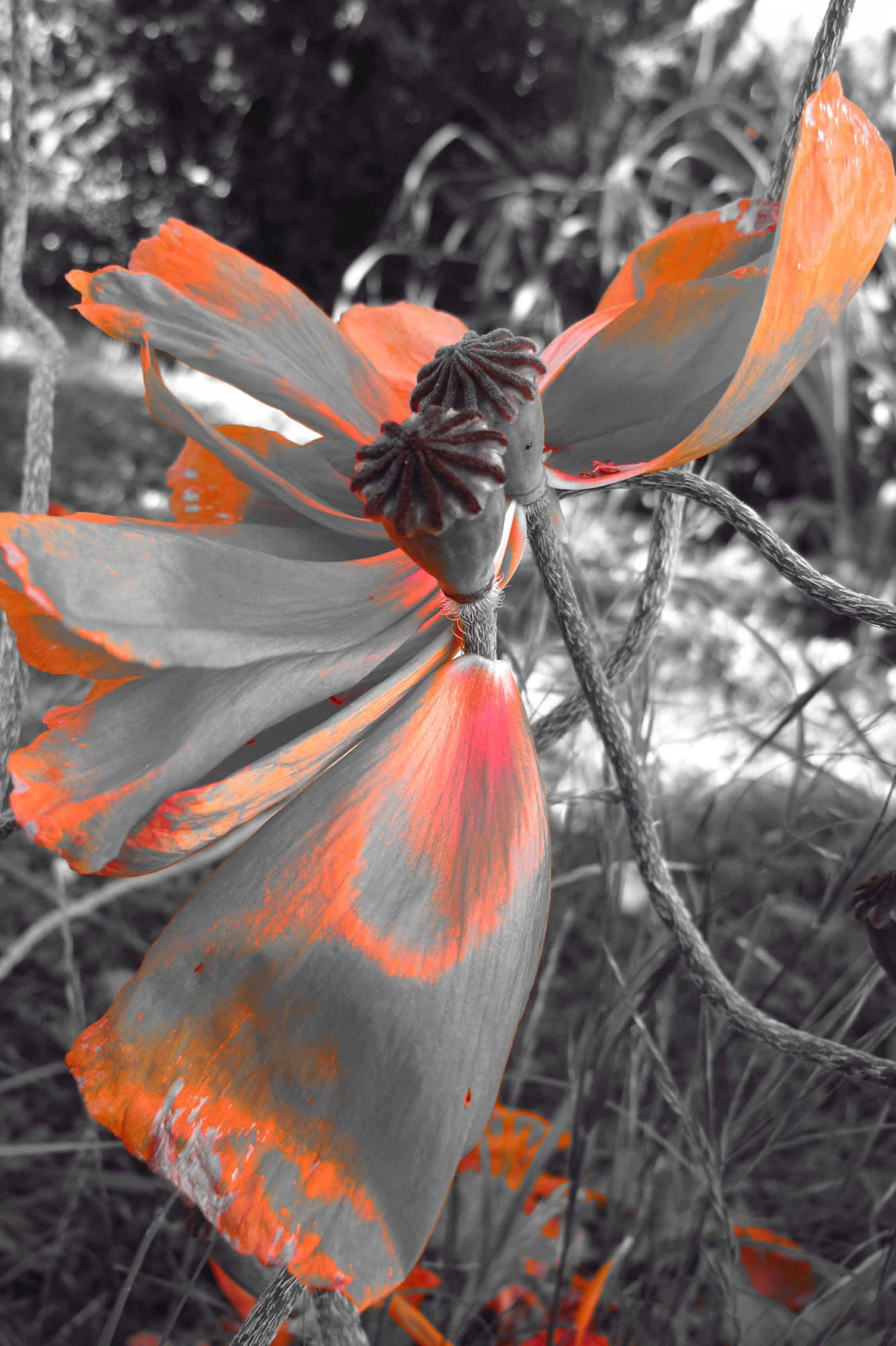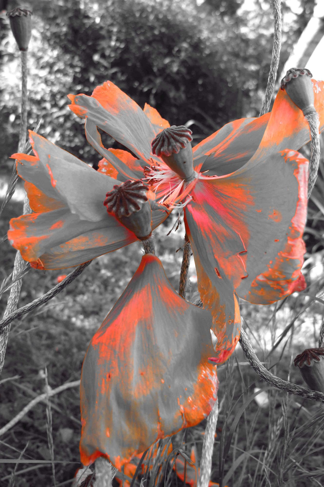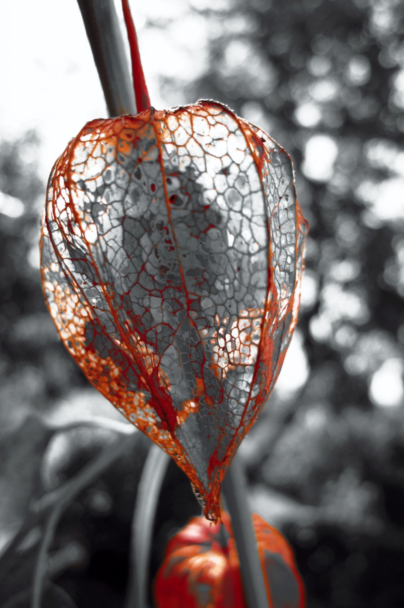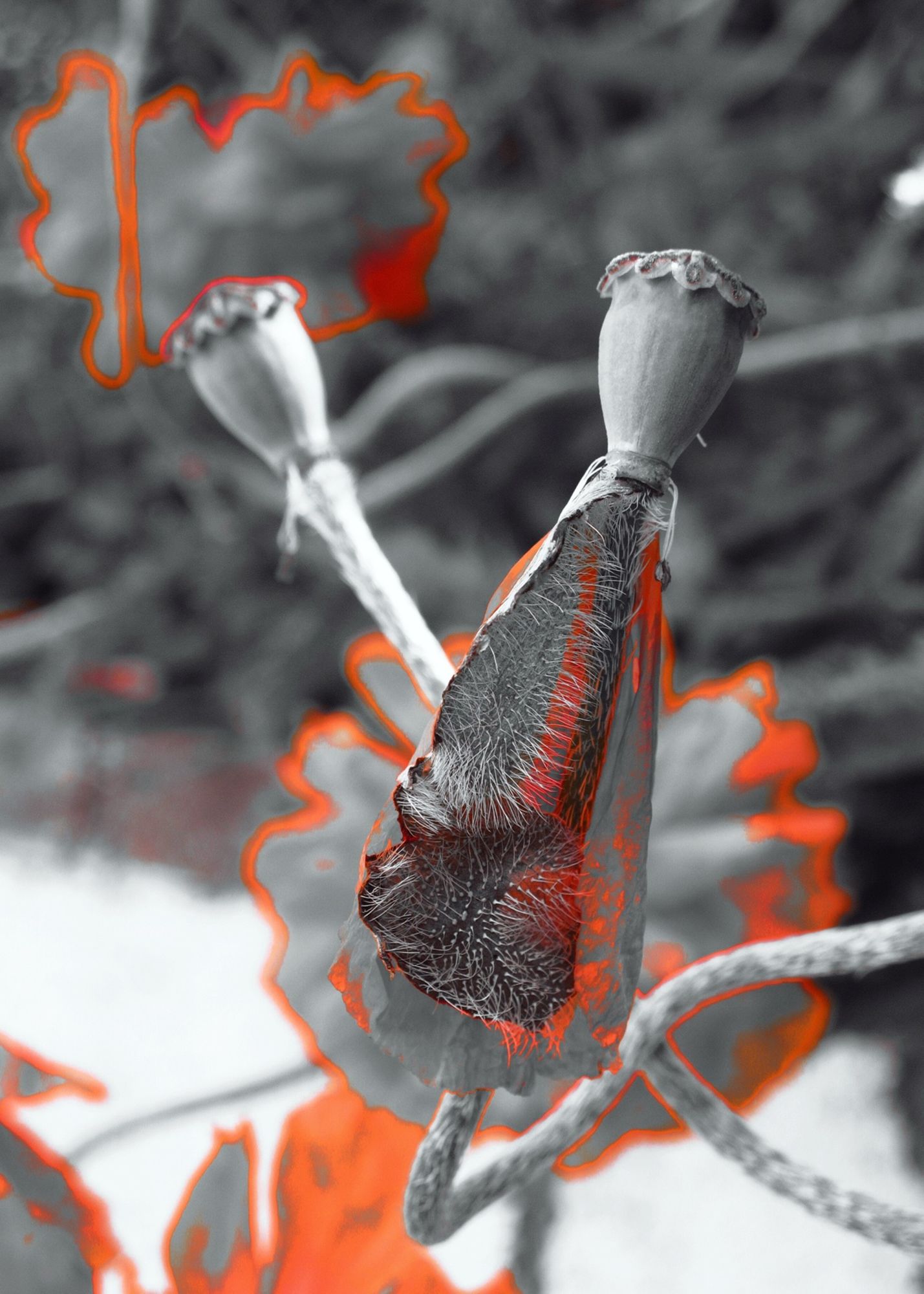 A cette collection de coquelicots s’ajoutent deux petites séries en couleur, l’une jouant sur le mouvement et l’autre élevant les alkékenges, ces petites cages végétales, au rang d’objets d’art. Pris hors de leur environnement, gorgés de couleurs vives, ils charment l’œil tout en dégageant une impression de pureté.