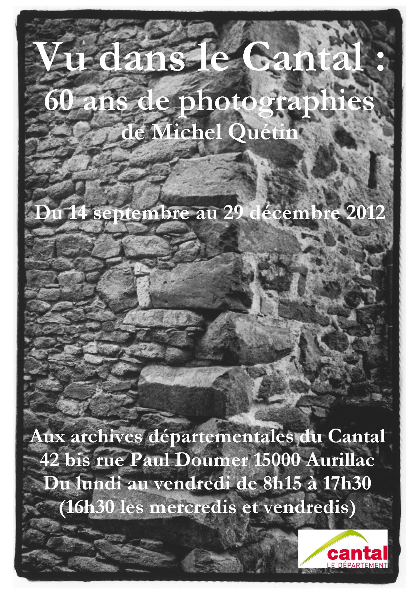 Aurillacois, archiviste et photographe, Michel Quétin a consacré sa vie professionnelle, aux Archives nationales, à la photographie. Archiviste de manifestations syndicales, conservateur des archives, archiviste de la photographie, c'est avant tout un homme qui pose sur le monde un regard bienveillant mais aigu, plein d'humour mais sans concession. De plus de trois mille pellicules qu'il a impressionnées depuis sa jeunesse et qu'il a décidé d'ailleurs de déposer aux Archives du Cantal, Michel Quétin a extrait 40 photos, prises dans le Cantal depuis 60 ans. Elles ont été tirées par Daniel Lebée, et elles nous permettent de voir, jusqu'à la fin de l'année 2012, un Cantal jamais vu.