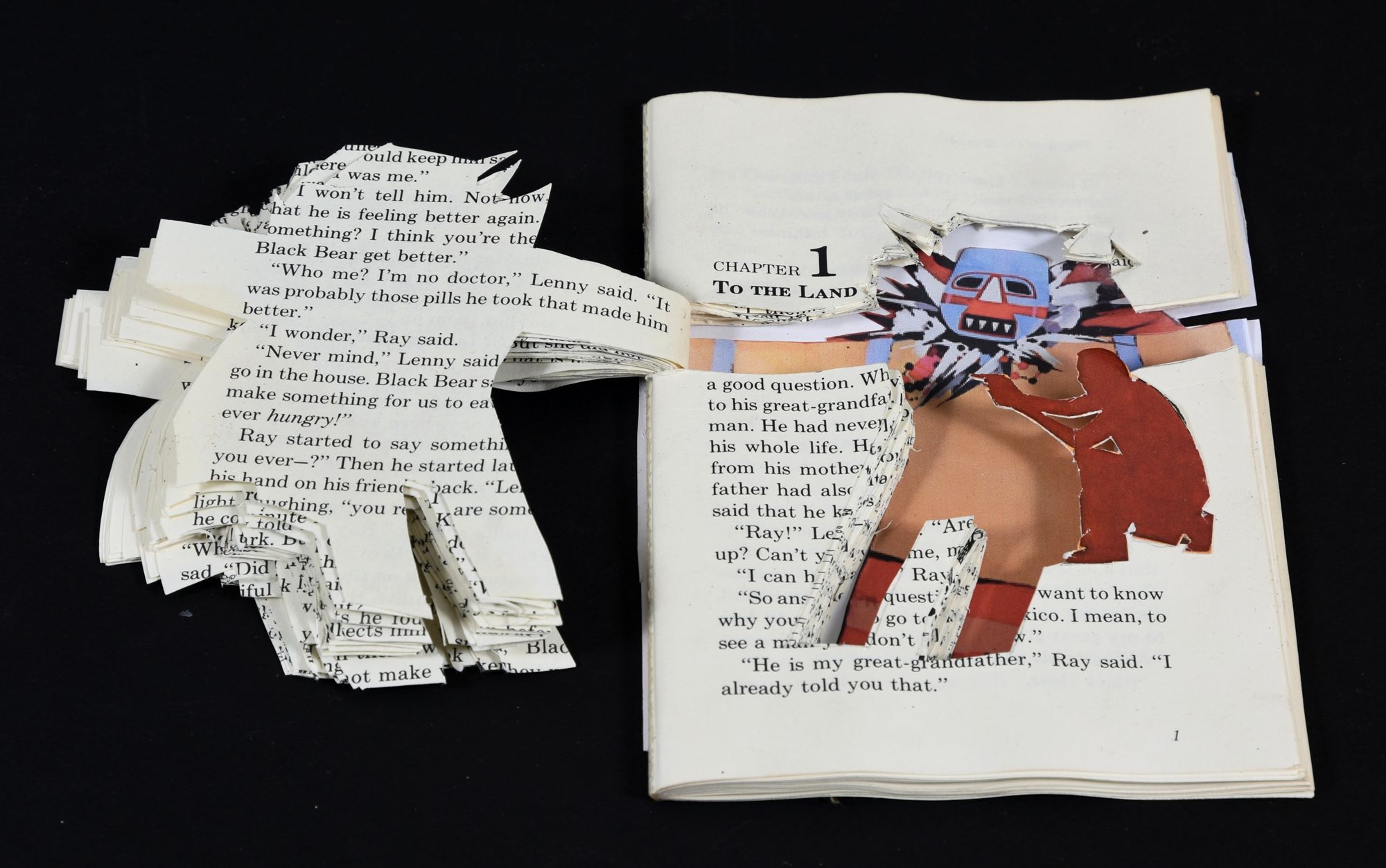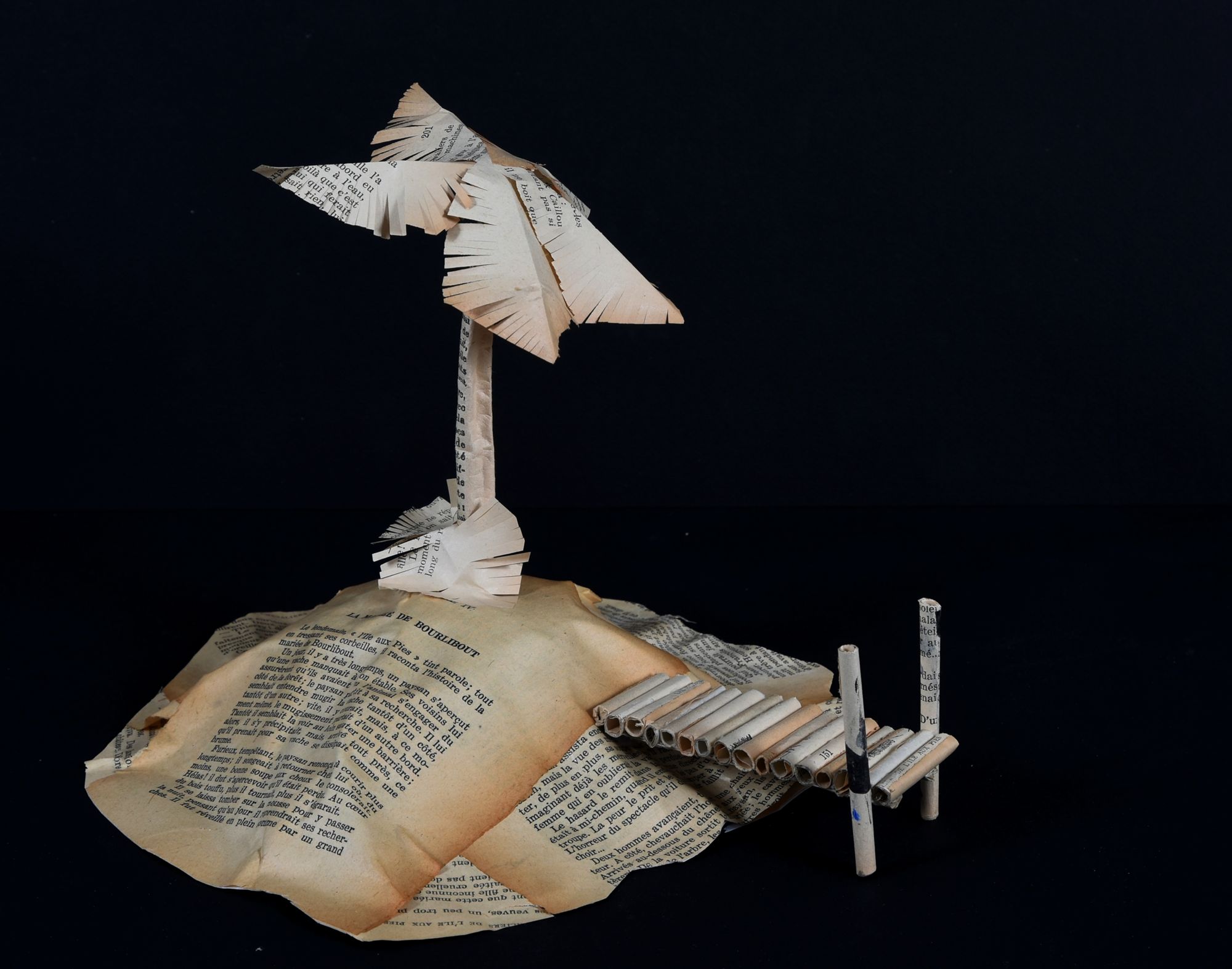 Munis de ces nouvelles connaissances, de leur propre culture, de leurs opinions et surtout de leur imagination, les élèves ont disposé de deux mois pour réfléchir et mettre en oeuvre leur projet. Passés sous le prisme de l'art, les livres abandonnés par les lycéens et mis au rebut par les documentalistes connaissent une nouvelle vie. Un réincarnation, dans laquelle on retrouve une partie de l'objet original, une page déchirée, une couverture, quelques feuilles collées, un ouvrage creusé en son centre. Auparavant support de lecture, le livre perd sa destination première mais garde son essence. Car n'est-ce pas la vocation d'un livre que de provoquer des émotions, d'emmener son interlocuteur loin du quotidien, de l'inviter à se poser des questions, à remettre en cause ce qu'il tenait pour acquis ?