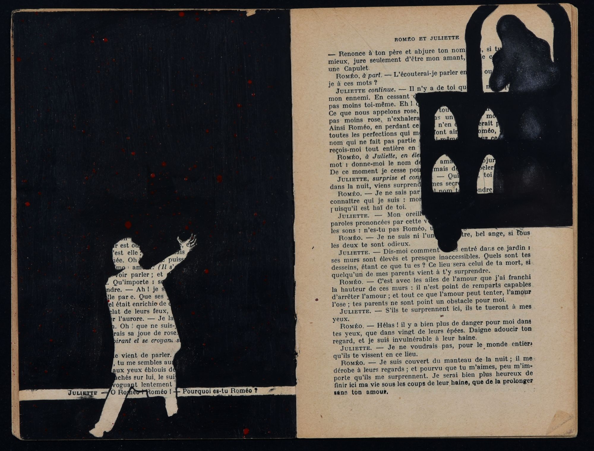 Par un jeu de couleurs et de matières, l’histoire des amants de Vérone trouve sa place au sein de l’ouvrage sur lequel ils sont ici représentés.
