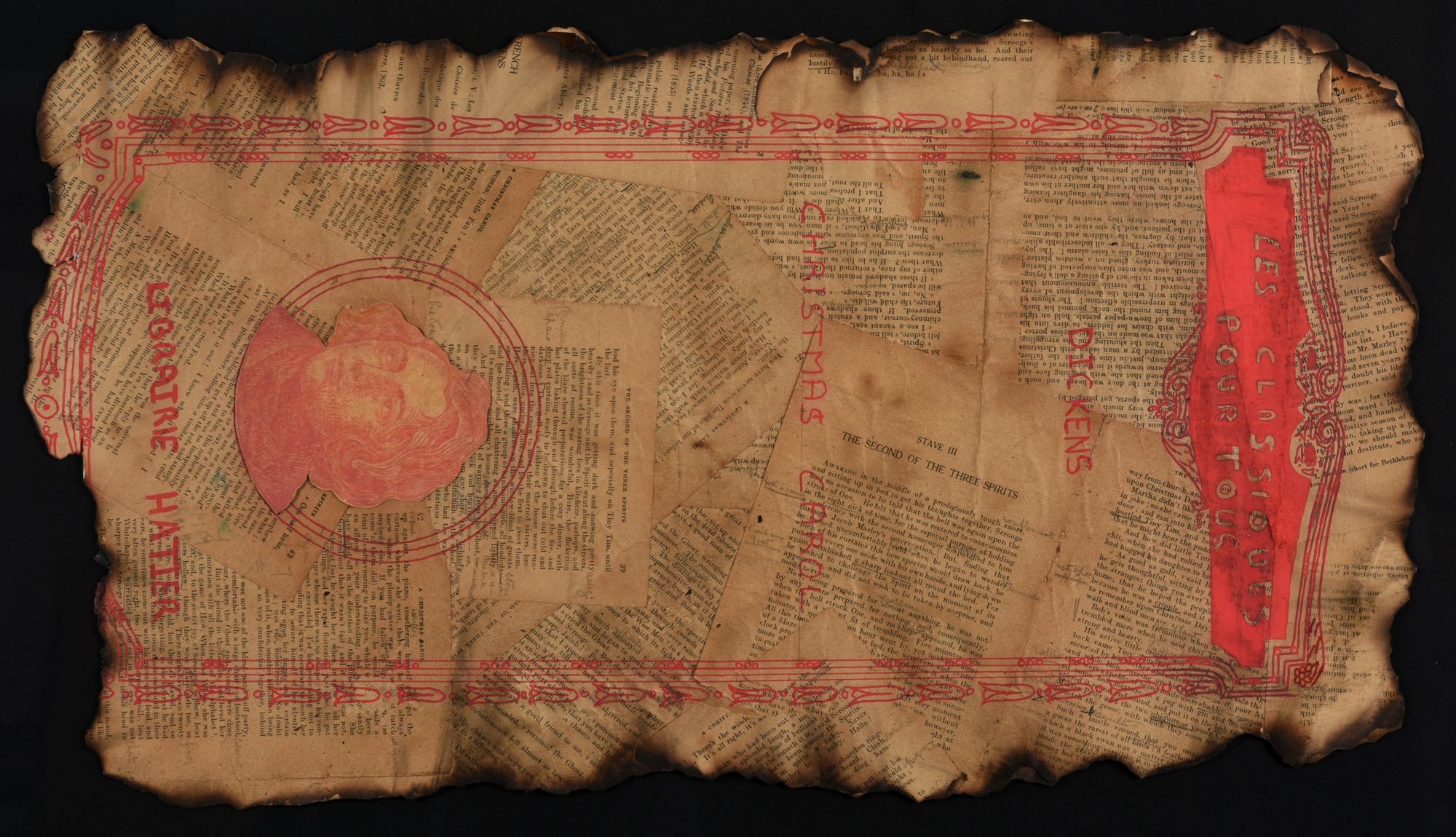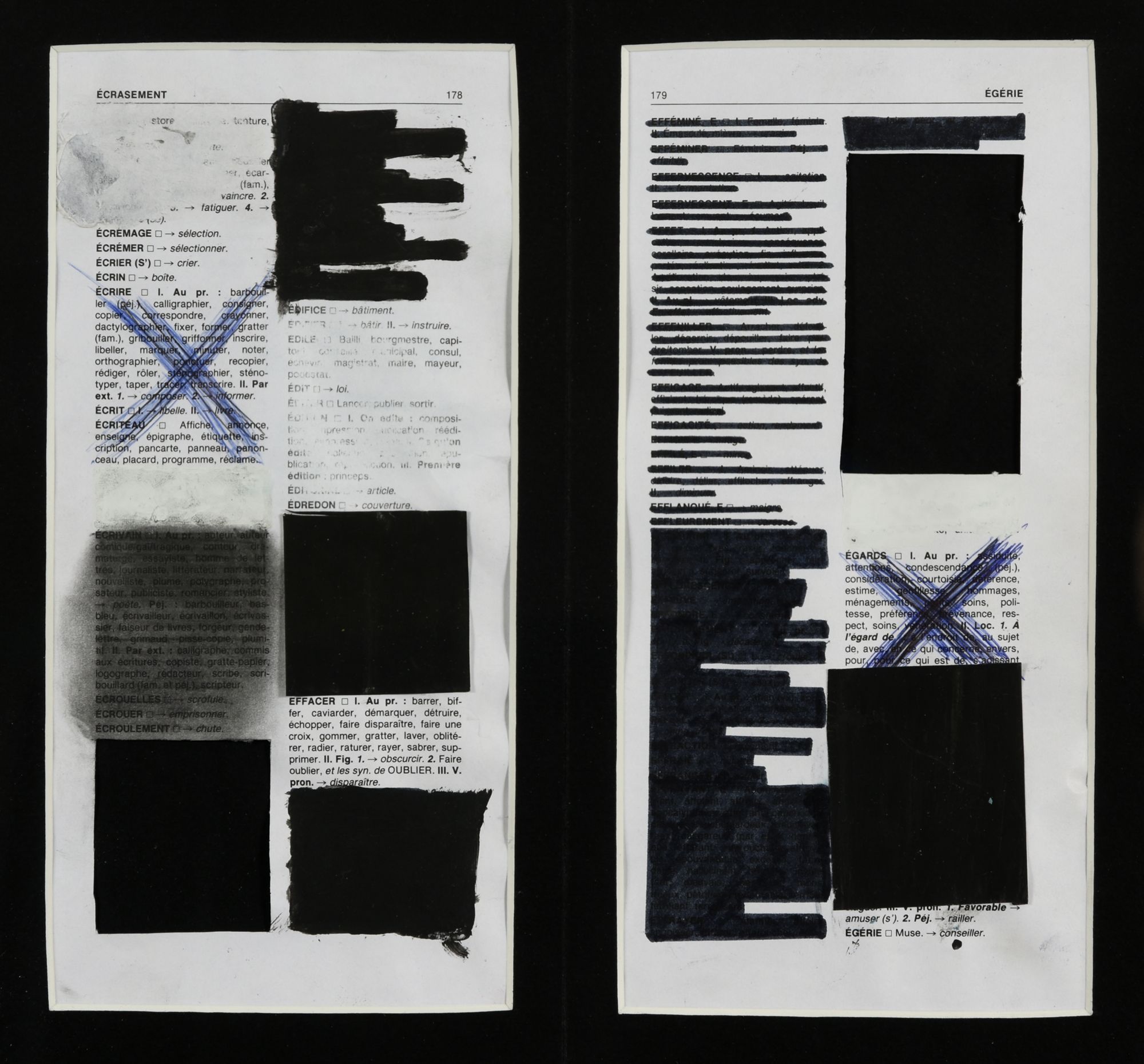 Les pages de l’ouvrage qui en sont extraites, sont usées, abimées, et détentrices d’une histoire, d’un vécu.