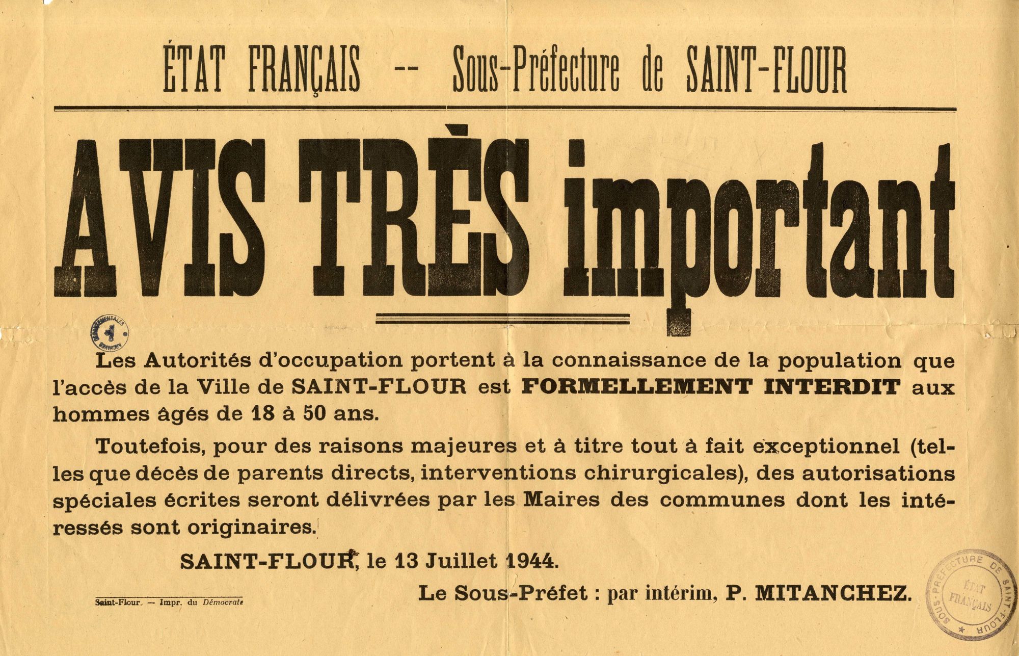 L’interdiction aux hommes d’entrer dans Saint-Flour vise à freiner la circulation des résistants et leurs contacts avec la ville.