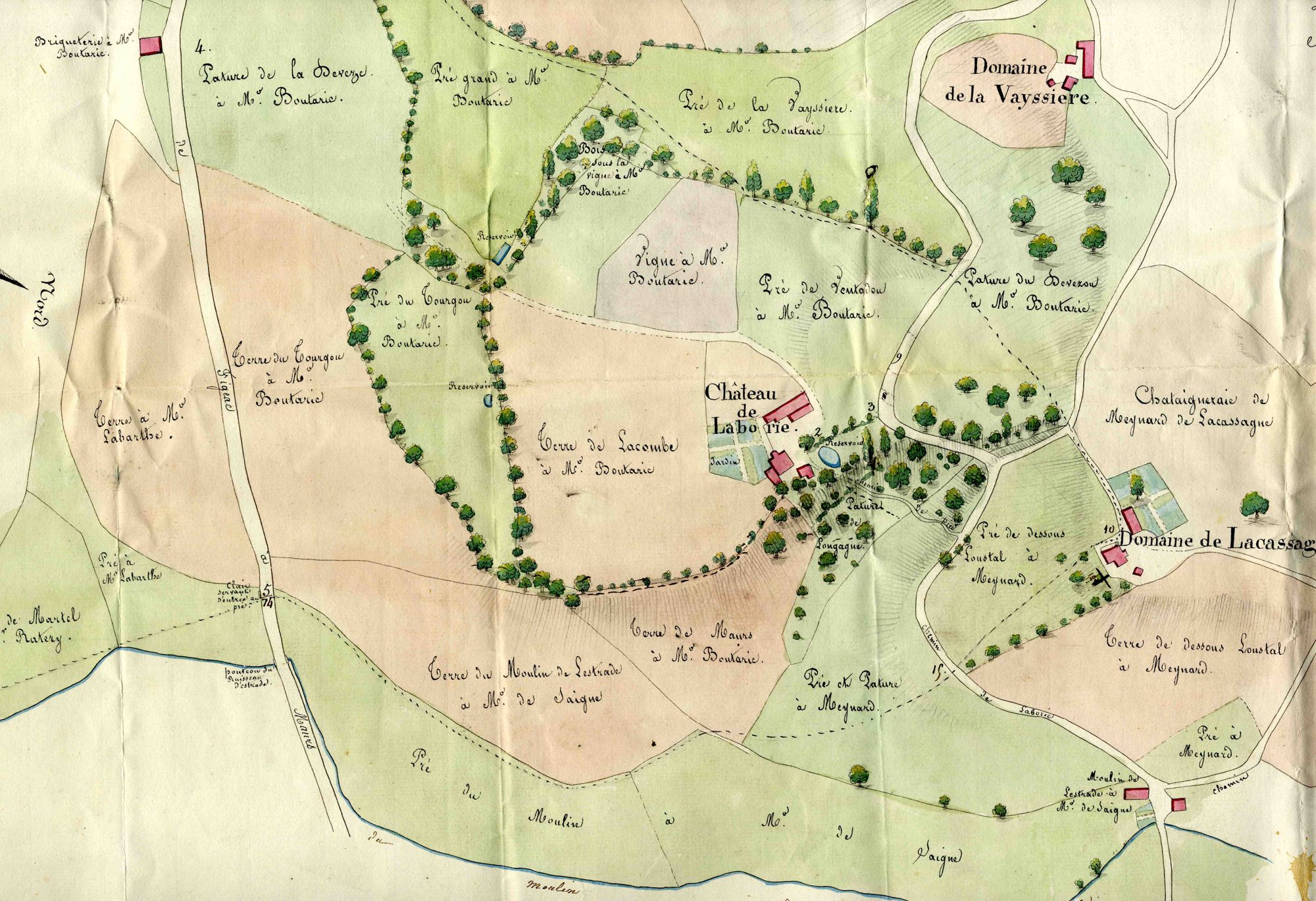 Cette mince affaire nous vaut un plan très beau et très détaillé du détail arachnéen des rigoles arrosant, depuis le ruisseau, les prés des deux domaines de Loubéjac, avec leurs bâtiments et leurs jardins.
