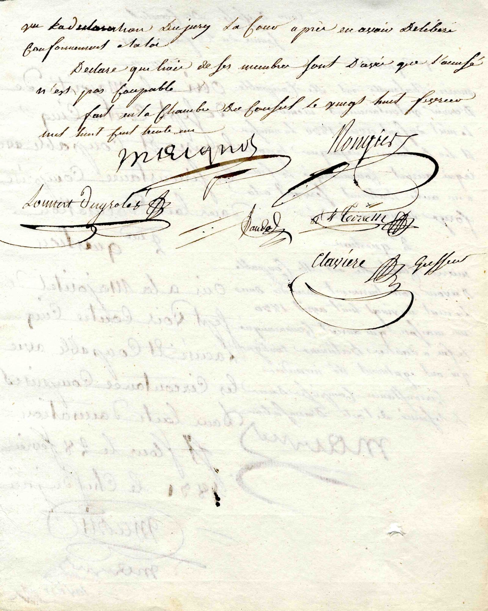 Le 28 août 1837, Jean Lagnol, maréchal-ferrant du bourg, assène un violent coup de hoyau à l'un de ses voisins, réglant ainsi un différend des plus obscurs. La blessure entraînant une impossibilité de travailler supérieure à 20 jours, le métallurgiste irascible et estropié de la main gauche est renvoyé aux assises. Lors de l'instruction, afin de convaincre le juge Marcombes de sa bonne foi, il dessine un plan des lieux, plutôt fruste, que celui-ci accepte néanmoins comme pièce à conviction. Les jurés, comme généralement dans ce genre d'affaires, font preuve de mansuétude, le condamnant à un an de prison.