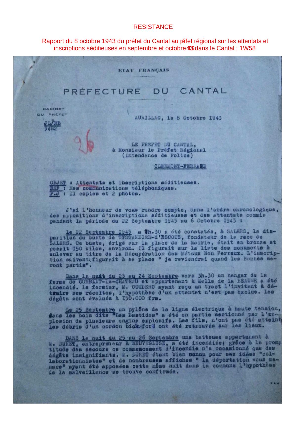 Il s’agit d’un travail à partir des ressources locales abordant la politique de la Terreur, la propagande/collaboration, la vie quotidienne et la résistance dans le Cantal.