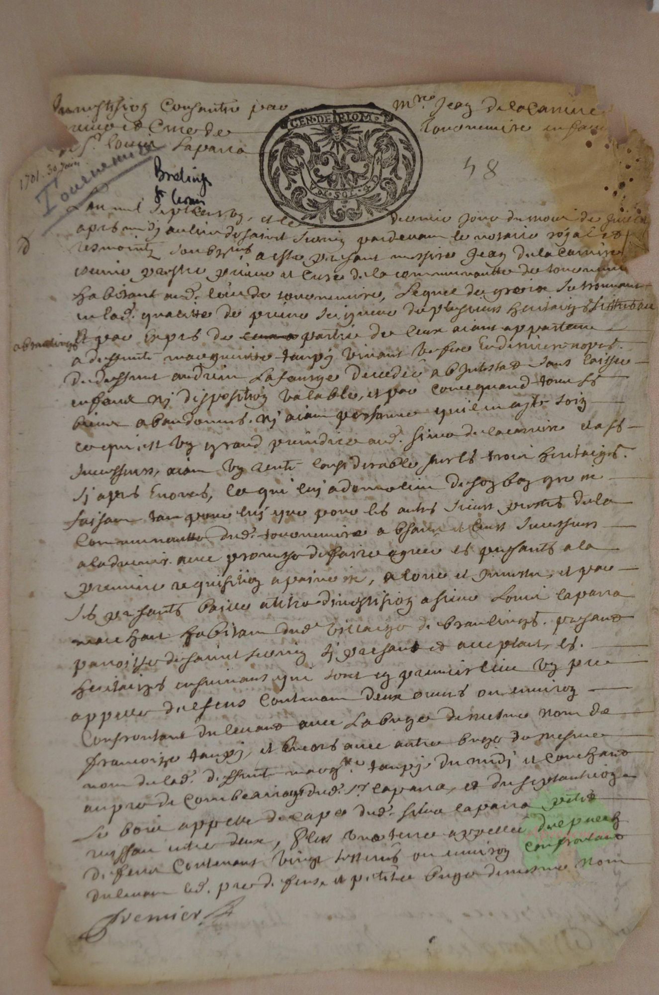 On trouve aussi dans cette liasse une minute datée de 1730, attribuée au notaire Jean II Parra.