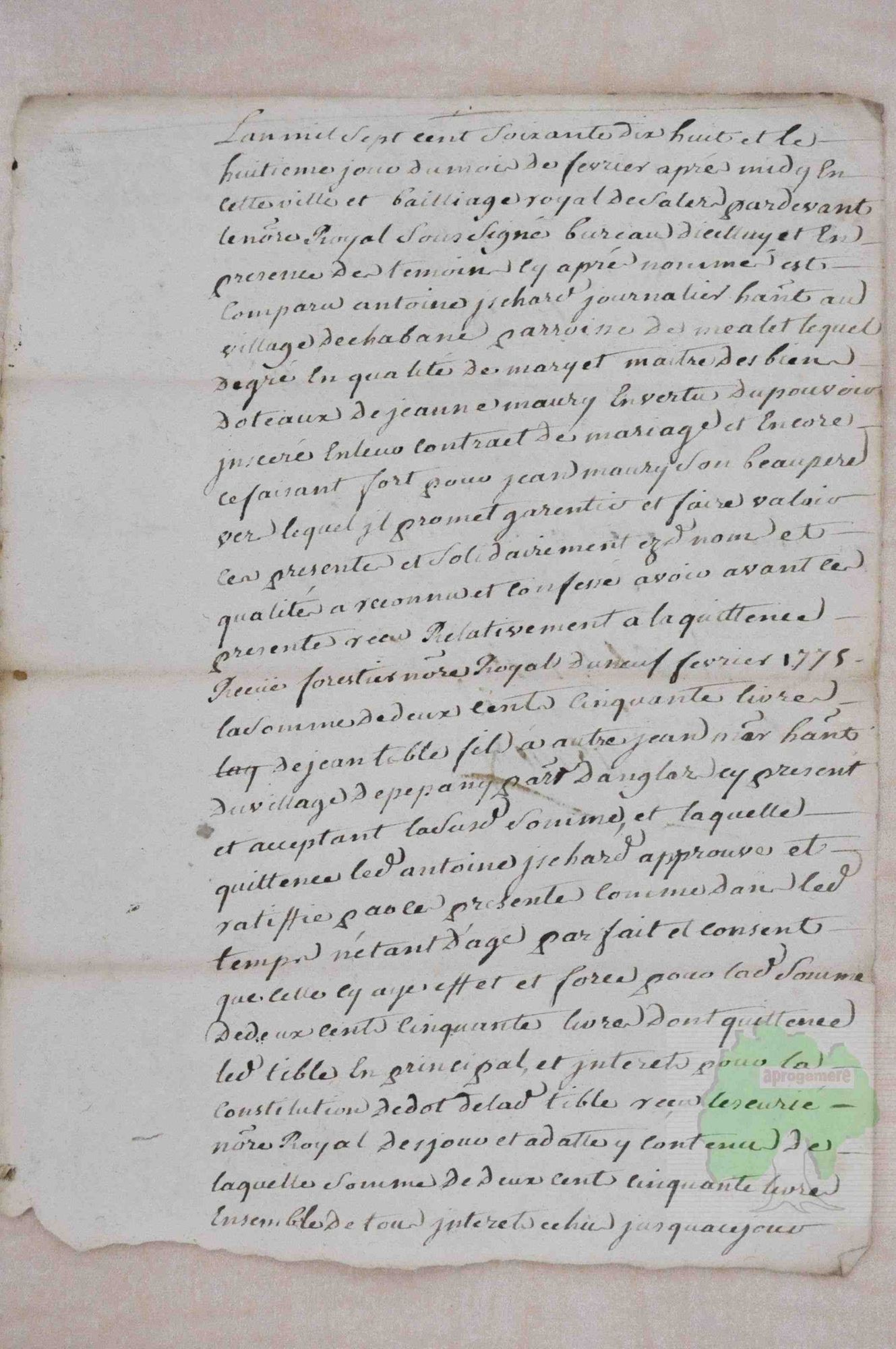 Variante : Salvaige. Provisions du roi : 15 avril 1767. Successeur de Jean Ferluc, notaire à Tournemire.