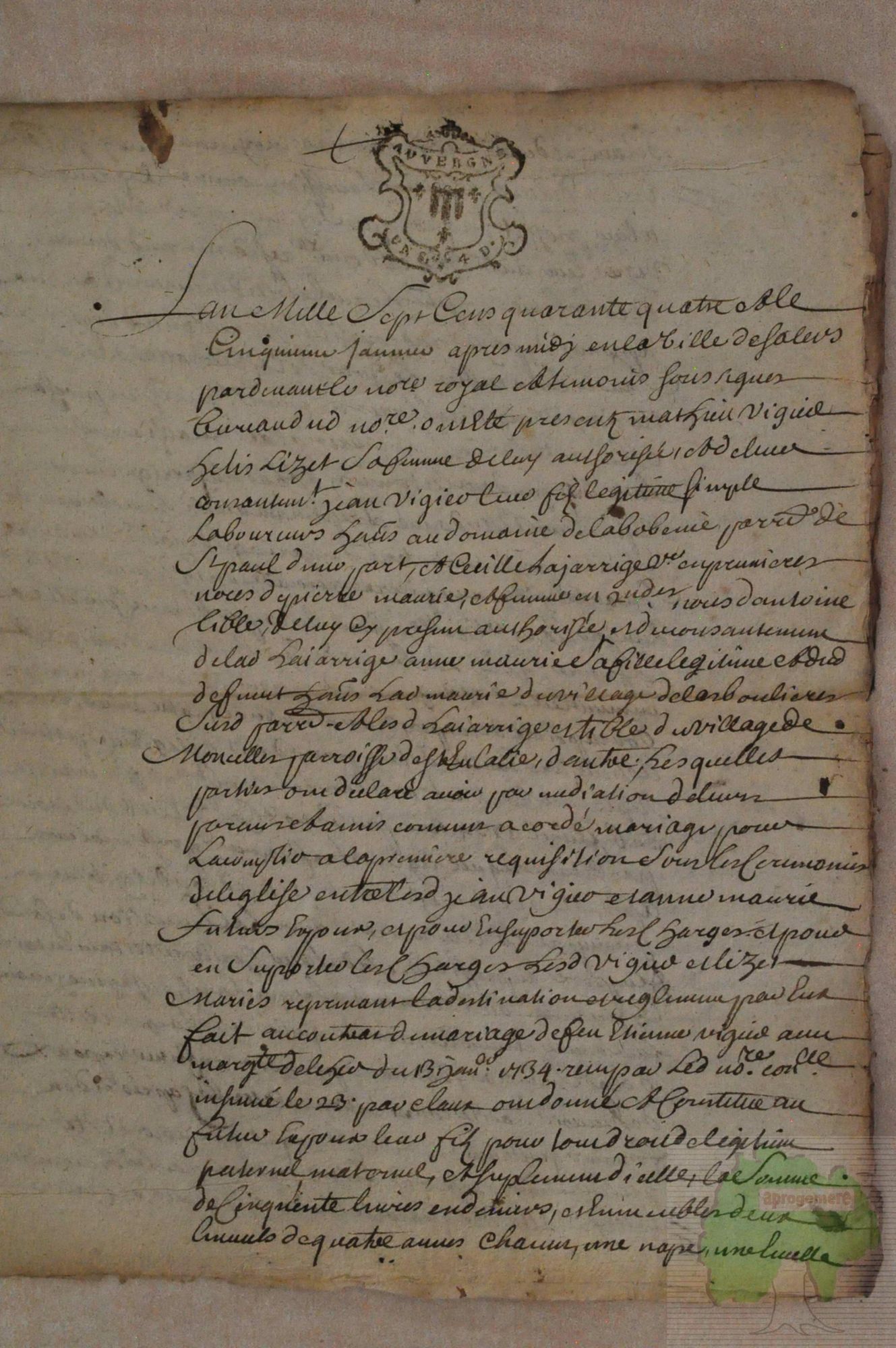 Provisions du roi : 14 juillet 1718. Successeur de Jean Meynial, notaire à Fontanges ; Henri Valette lui succède en 1759 (démission).