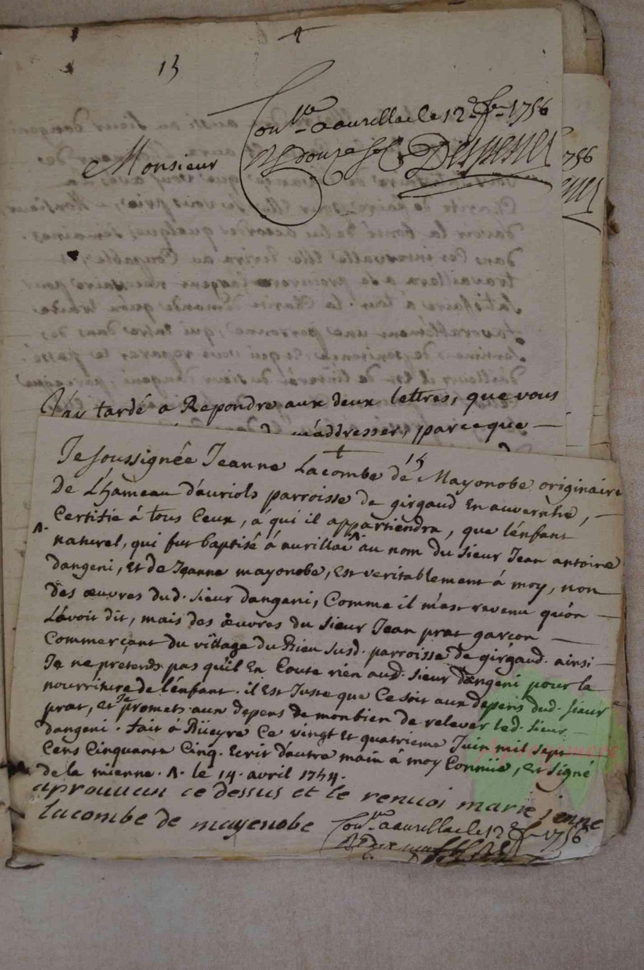 3 E 85/74, Janvier-novembre 1756