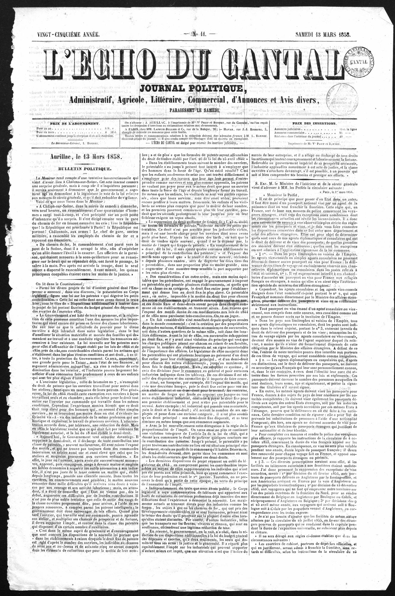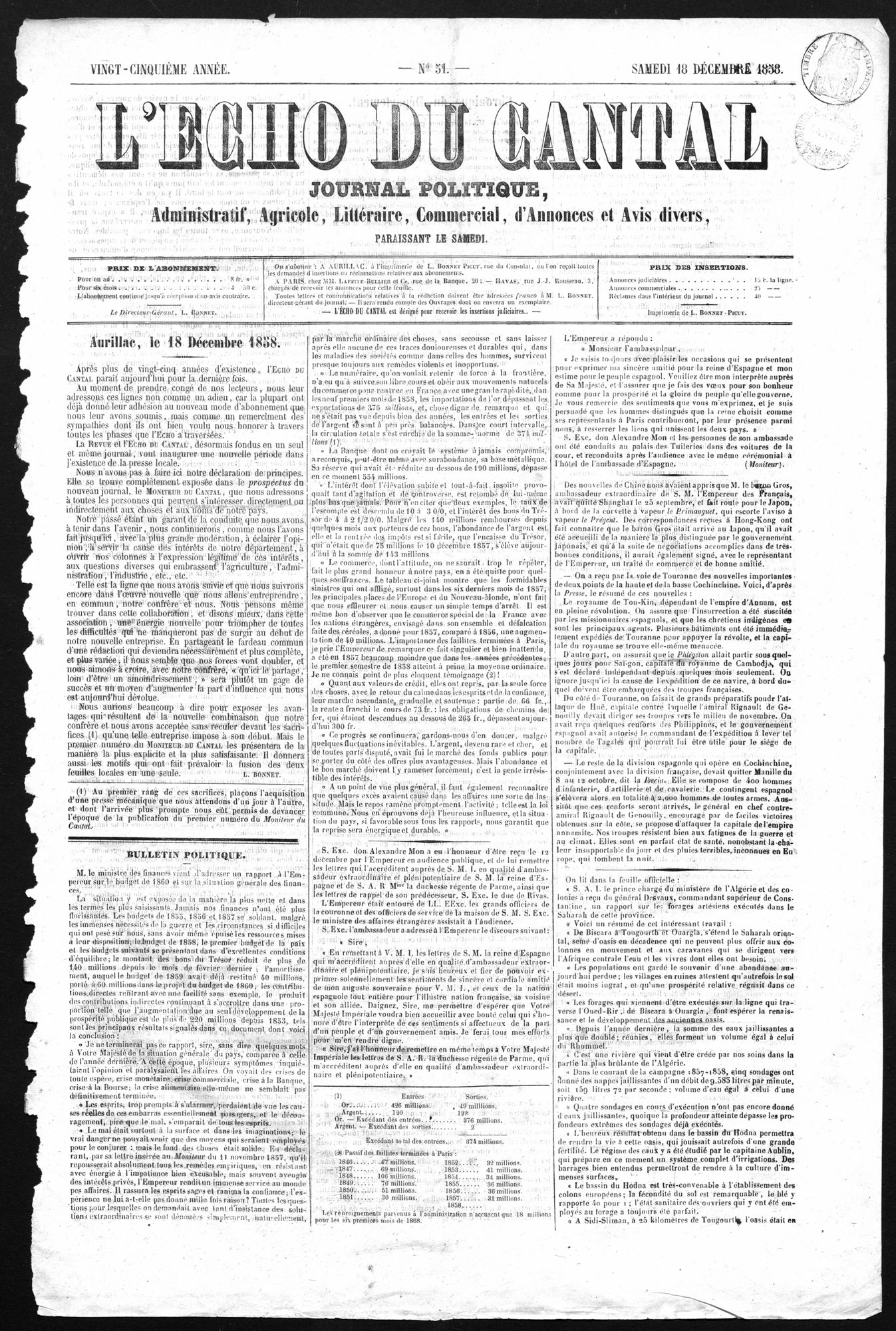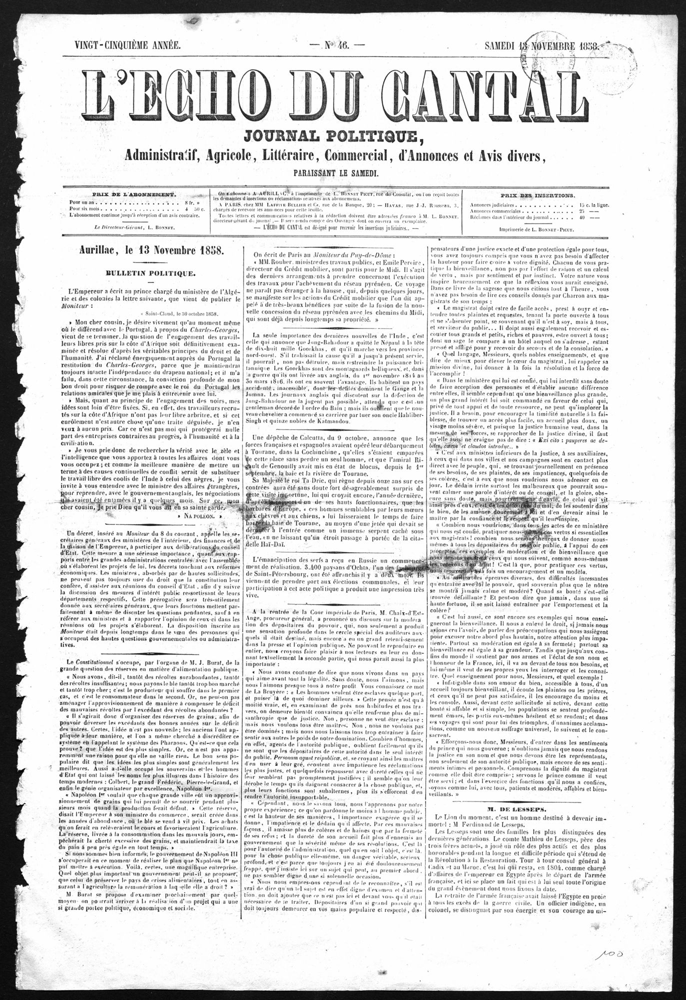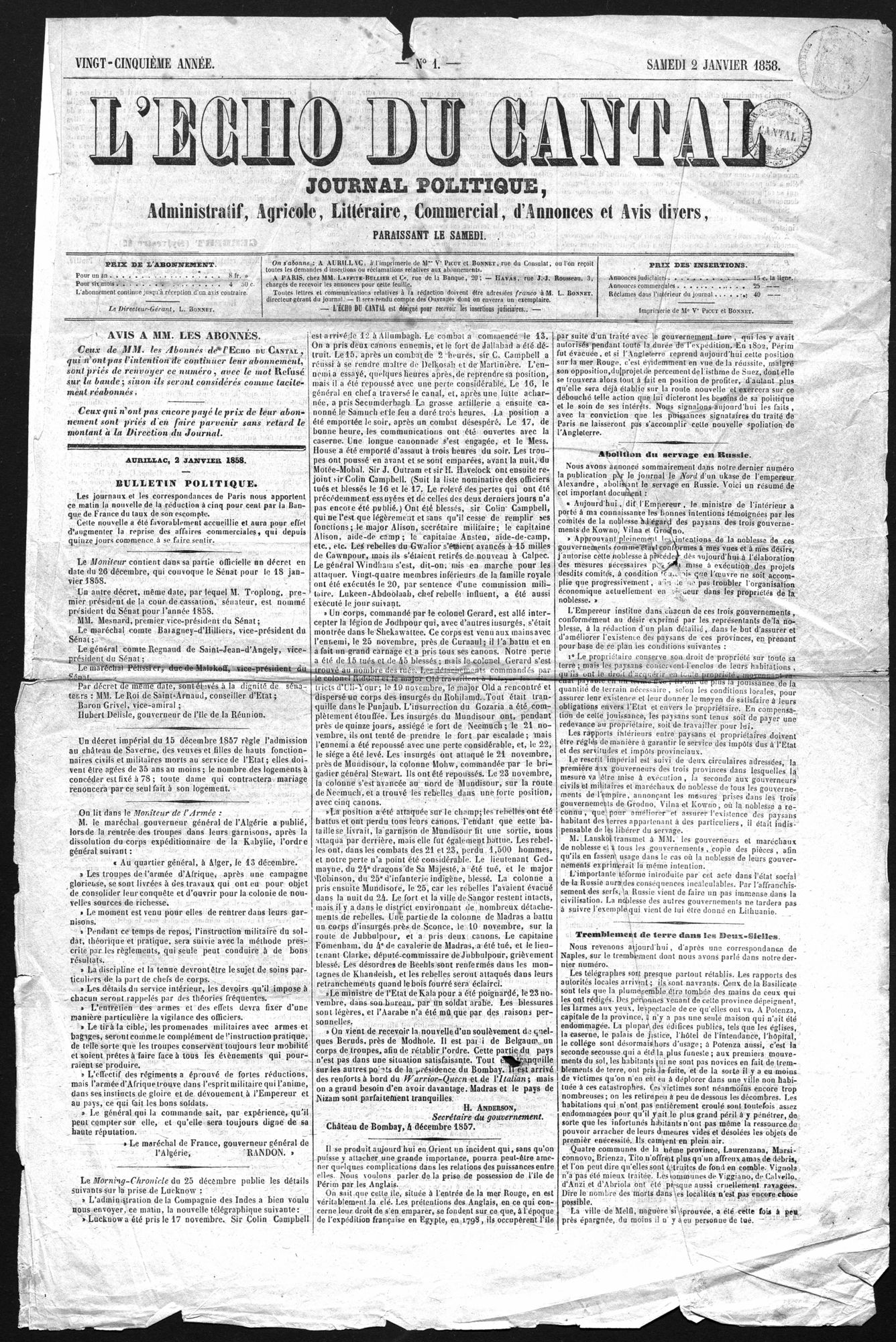 n° 3 : 16 janvier 1858, 2 JOUR 7, 1858, L'Echo du Cantal, Presse numérisée