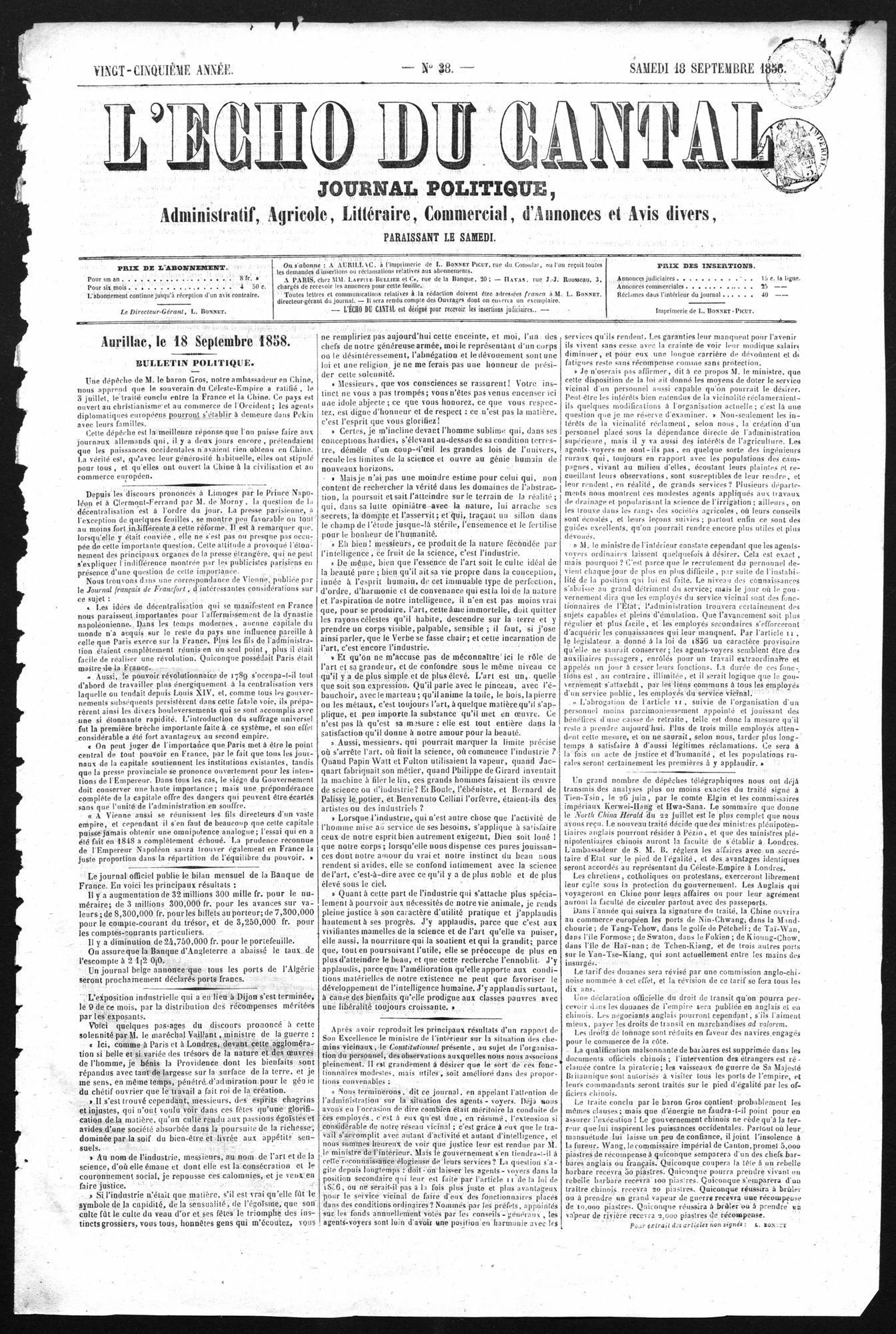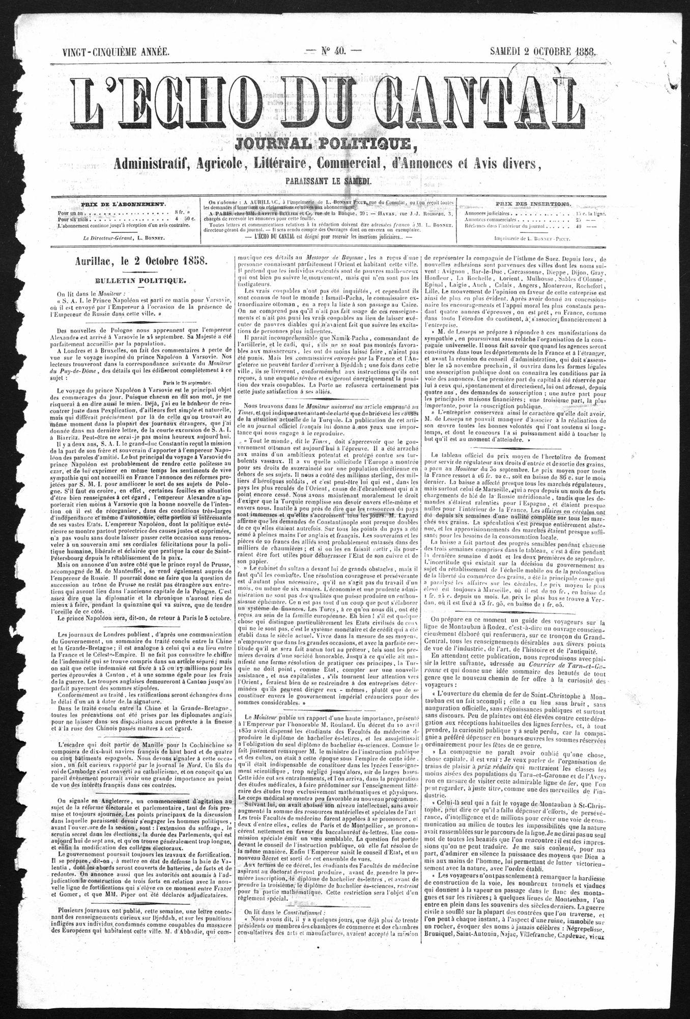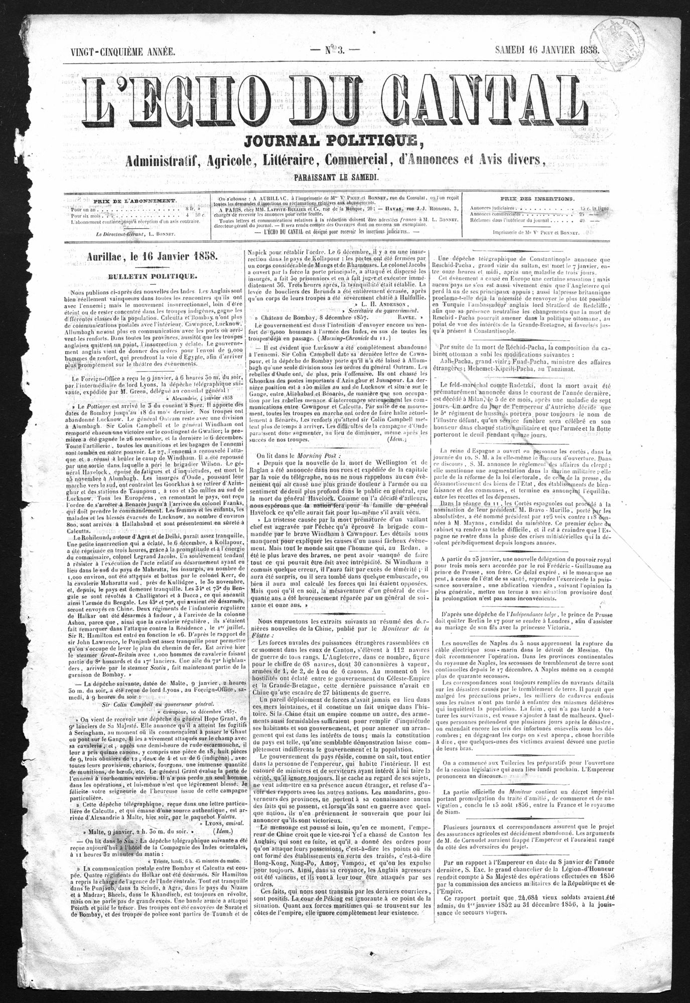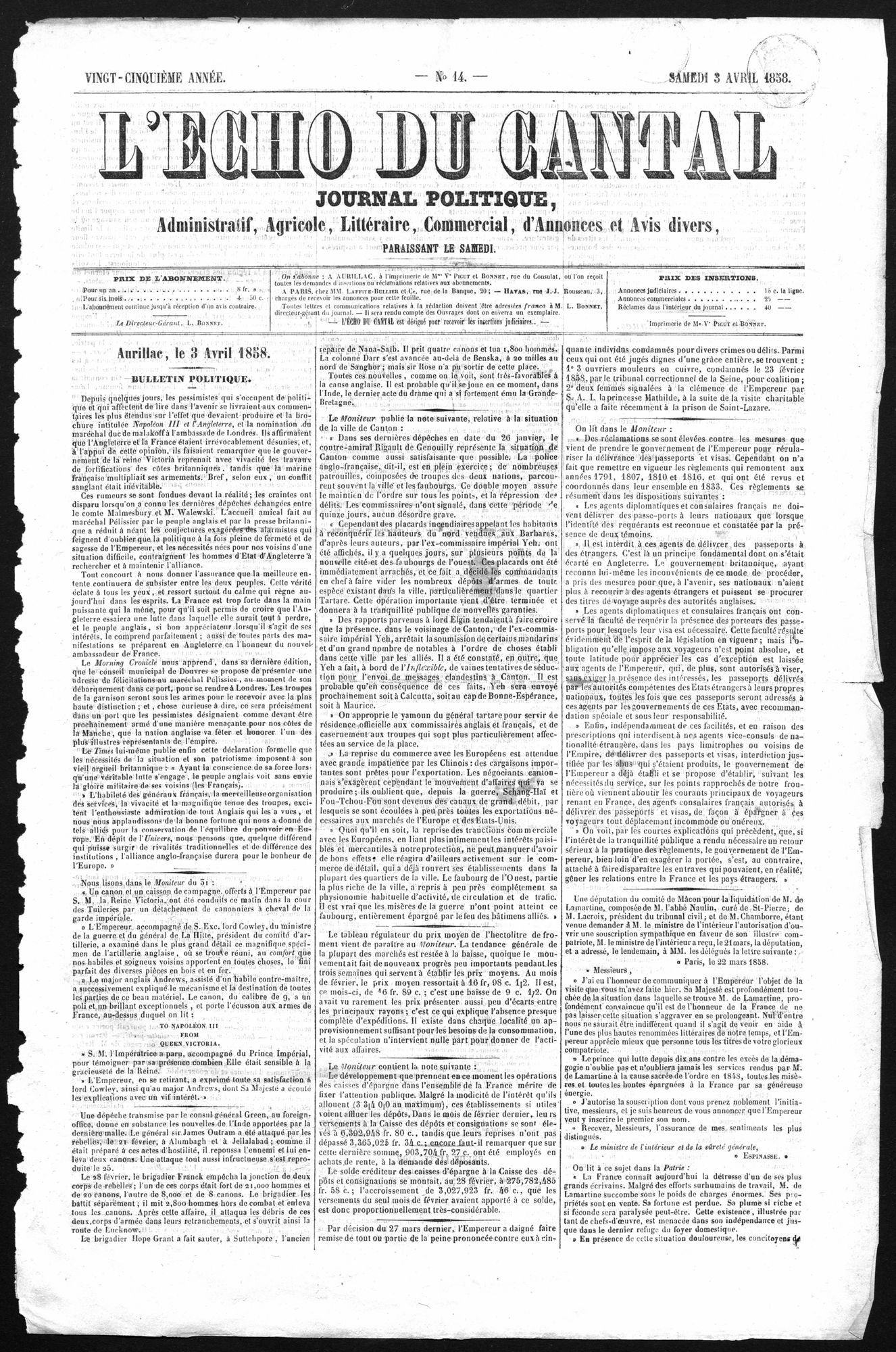 n° 3 : 16 janvier 1858, 2 JOUR 7, 1858, L'Echo du Cantal, Presse numérisée
