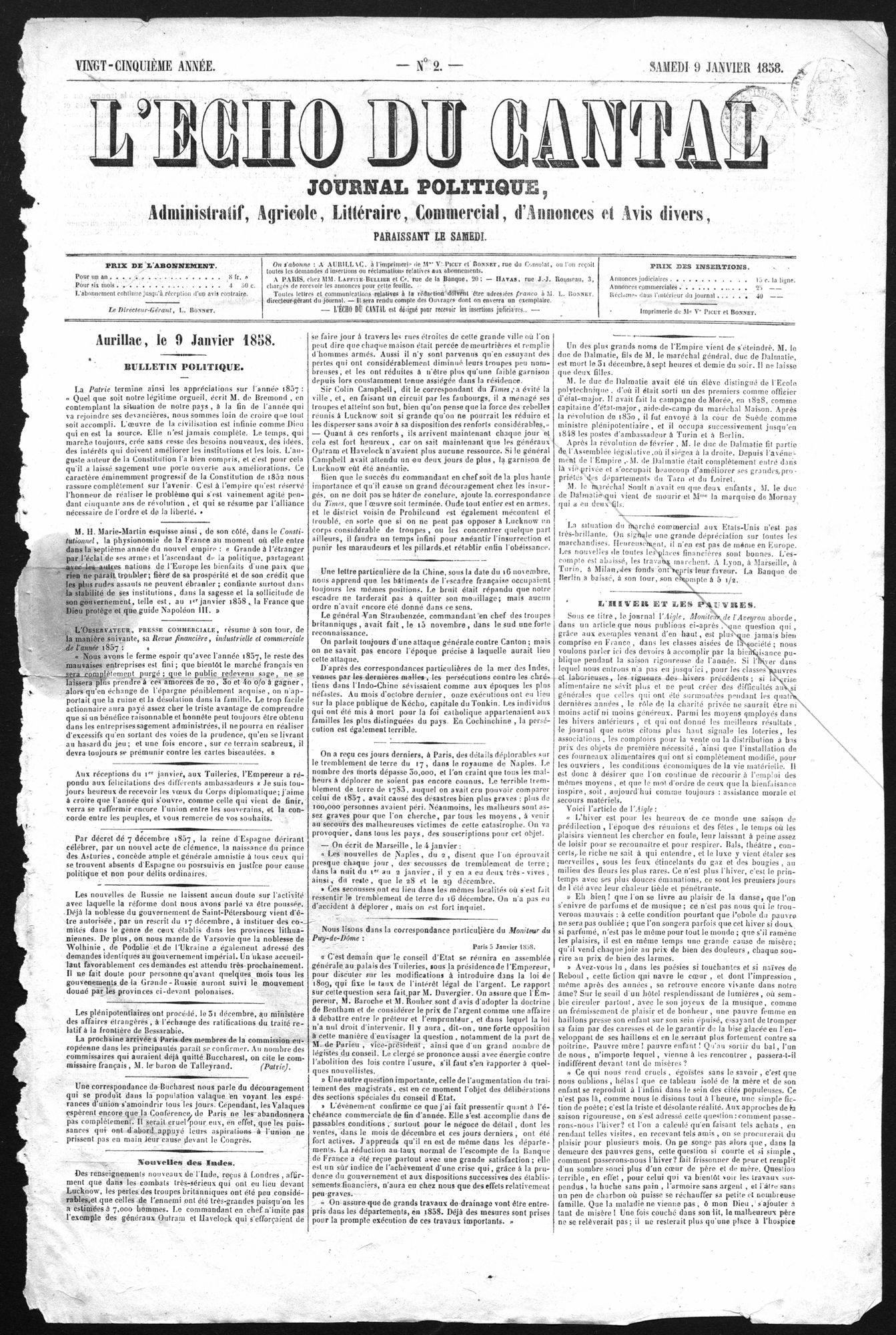 n° 2 : 9 janvier 1858, 2 JOUR 7, 1858, L'Echo du Cantal, Presse numérisée