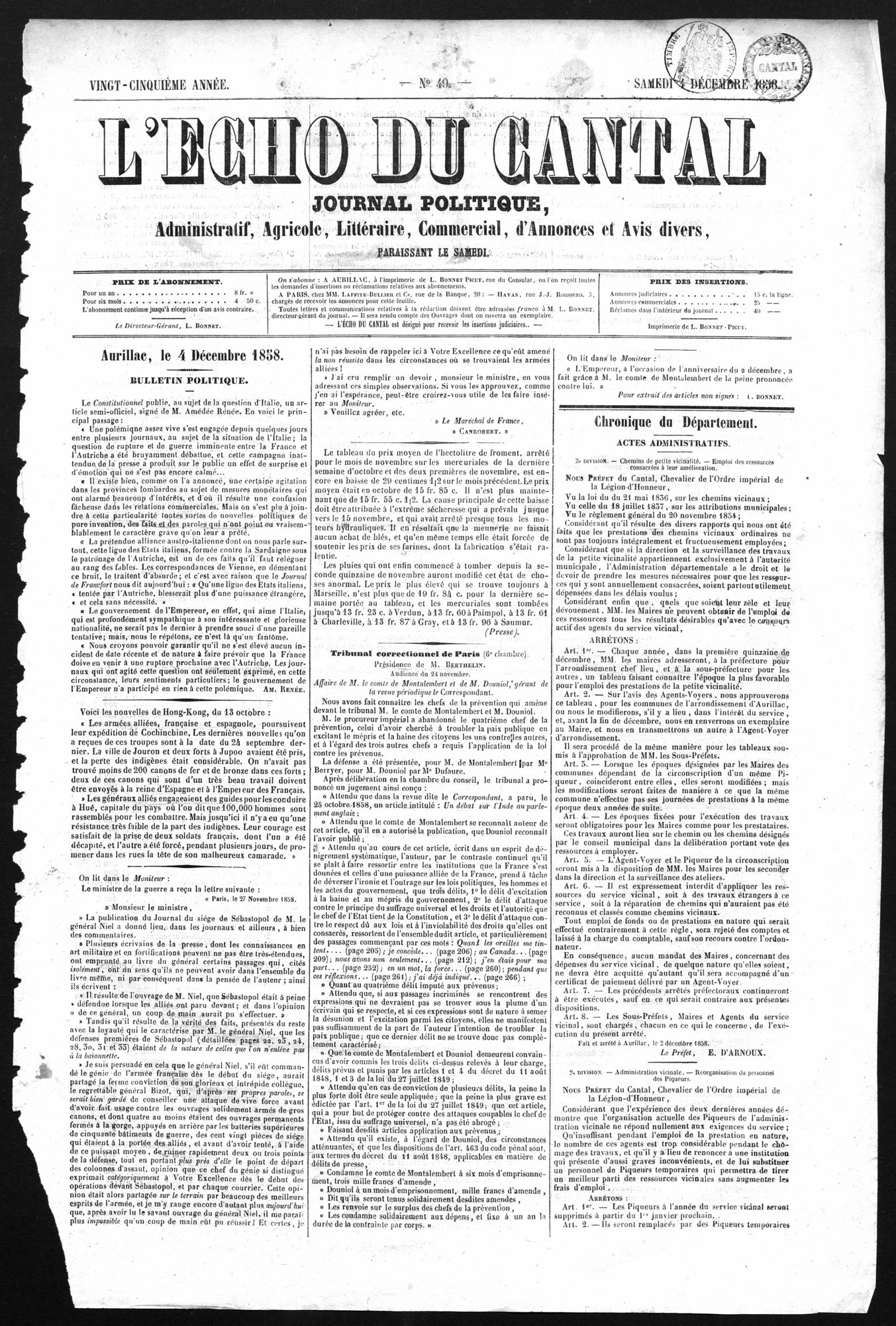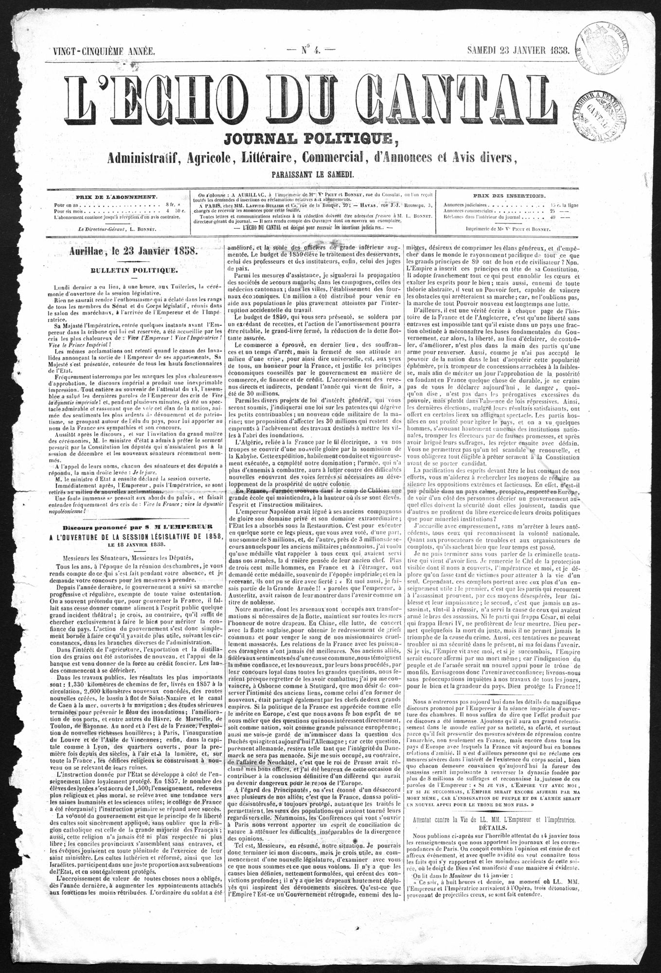 n° 4 : 23 janvier 1858, 2 JOUR 7, 1858, L'Echo du Cantal, Presse numérisée