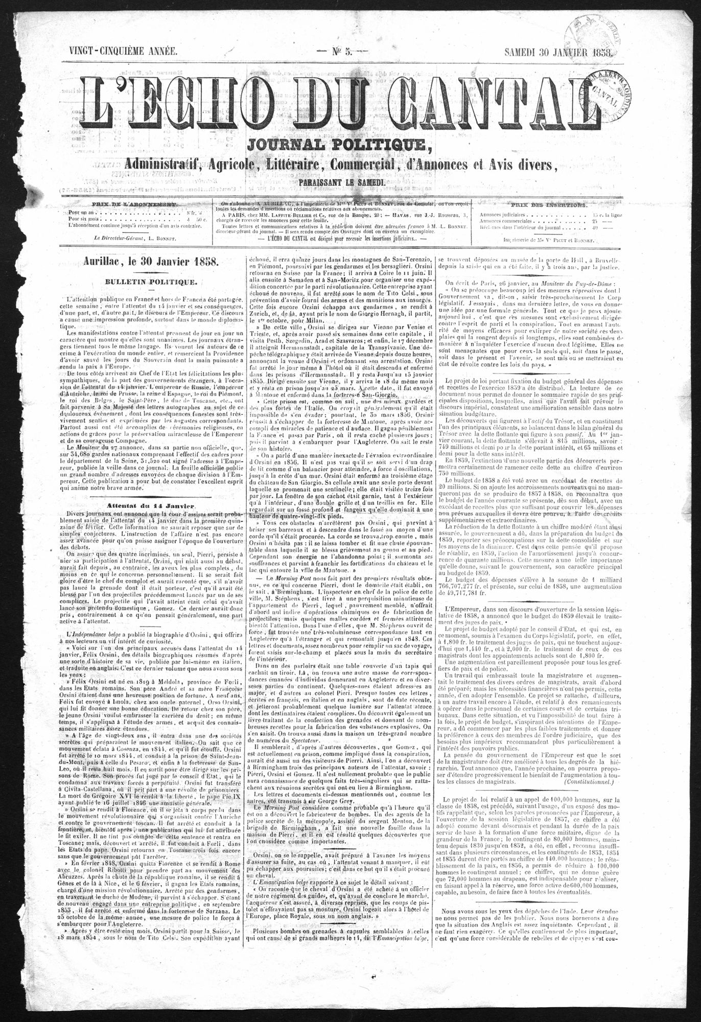 n° 5 : 30 janvier 1858, 2 JOUR 7, 1858, L'Echo du Cantal, Presse numérisée
