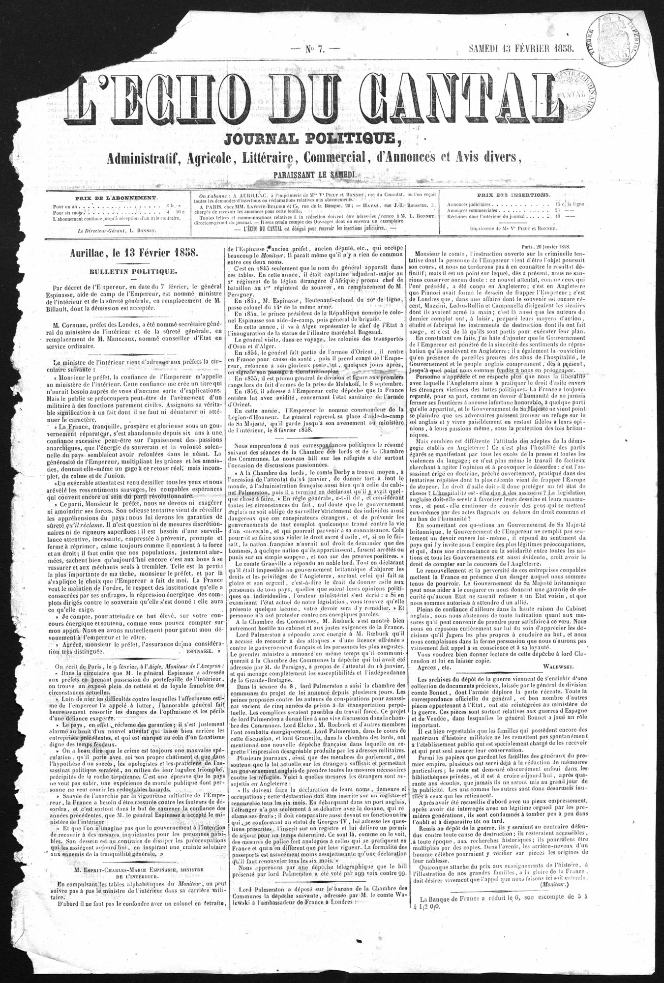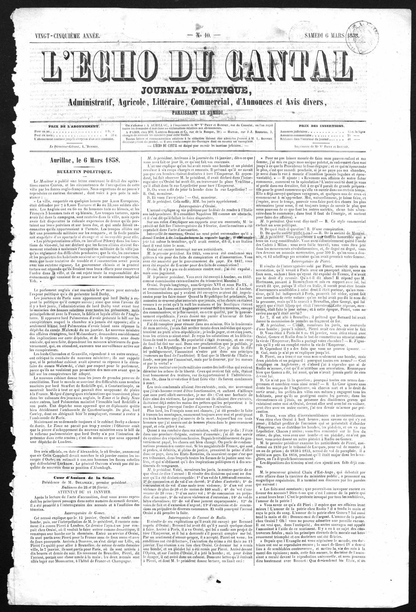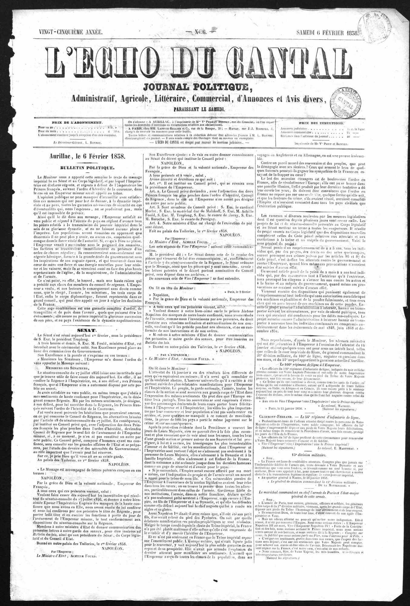 n° 6 : 6 février 1858, 2 JOUR 7, 1858, L'Echo du Cantal, Presse numérisée