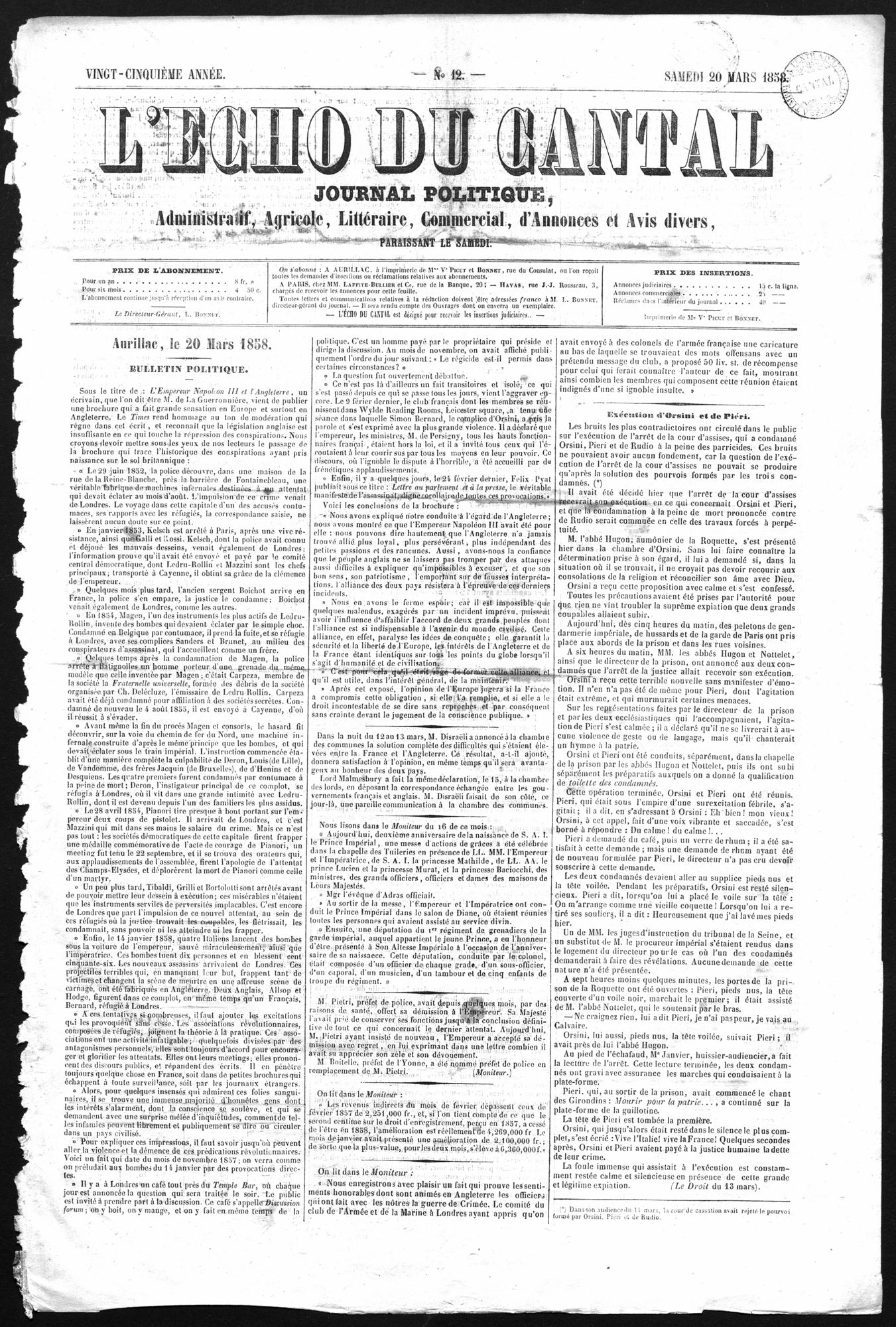 n° 12 : 20 mars 1858, 2 JOUR 7, 1858, L'Echo du Cantal, Presse numérisée