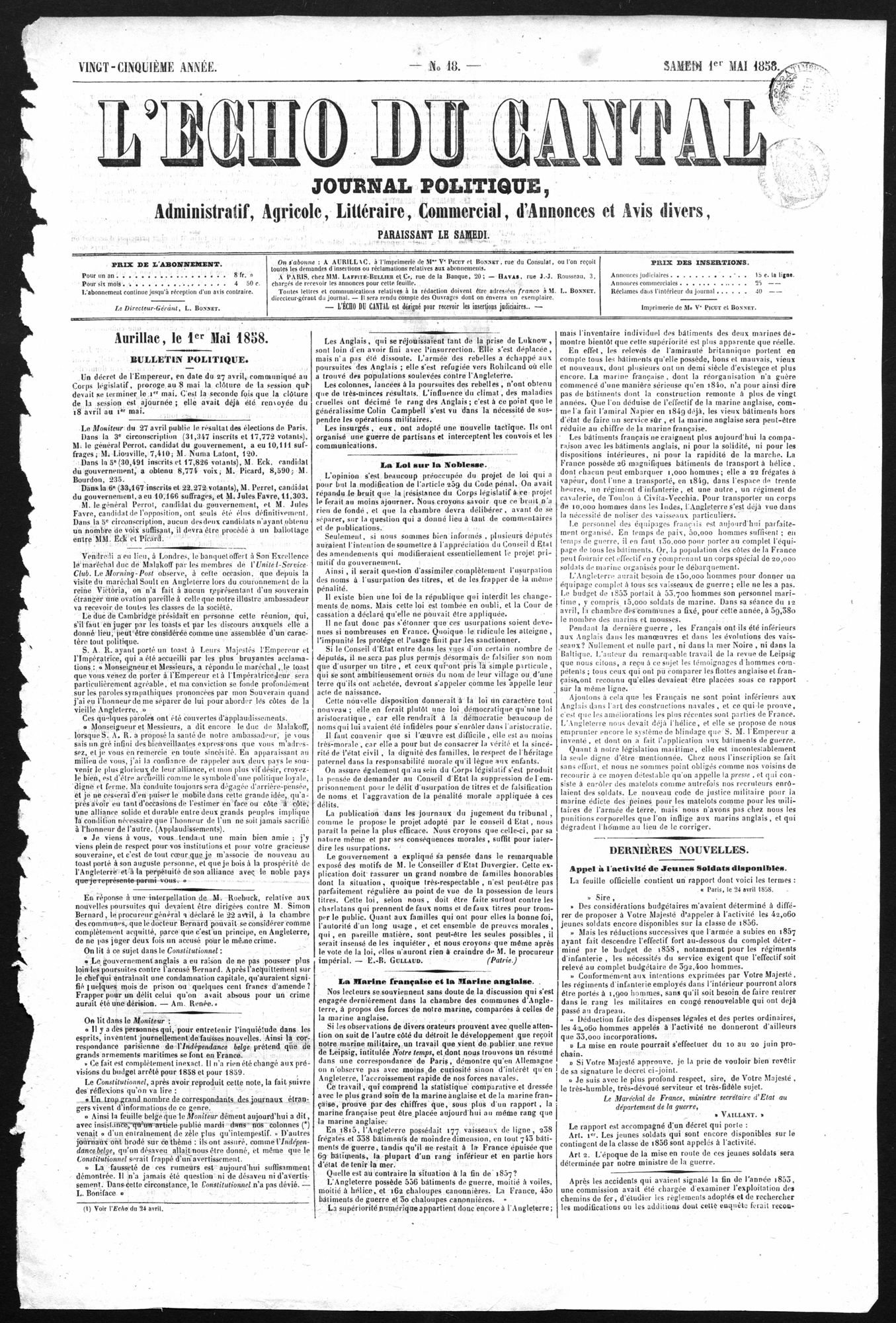 n° 18 : 1er mai 1858, 2 JOUR 7, 1858, L'Echo du Cantal, Presse numérisée