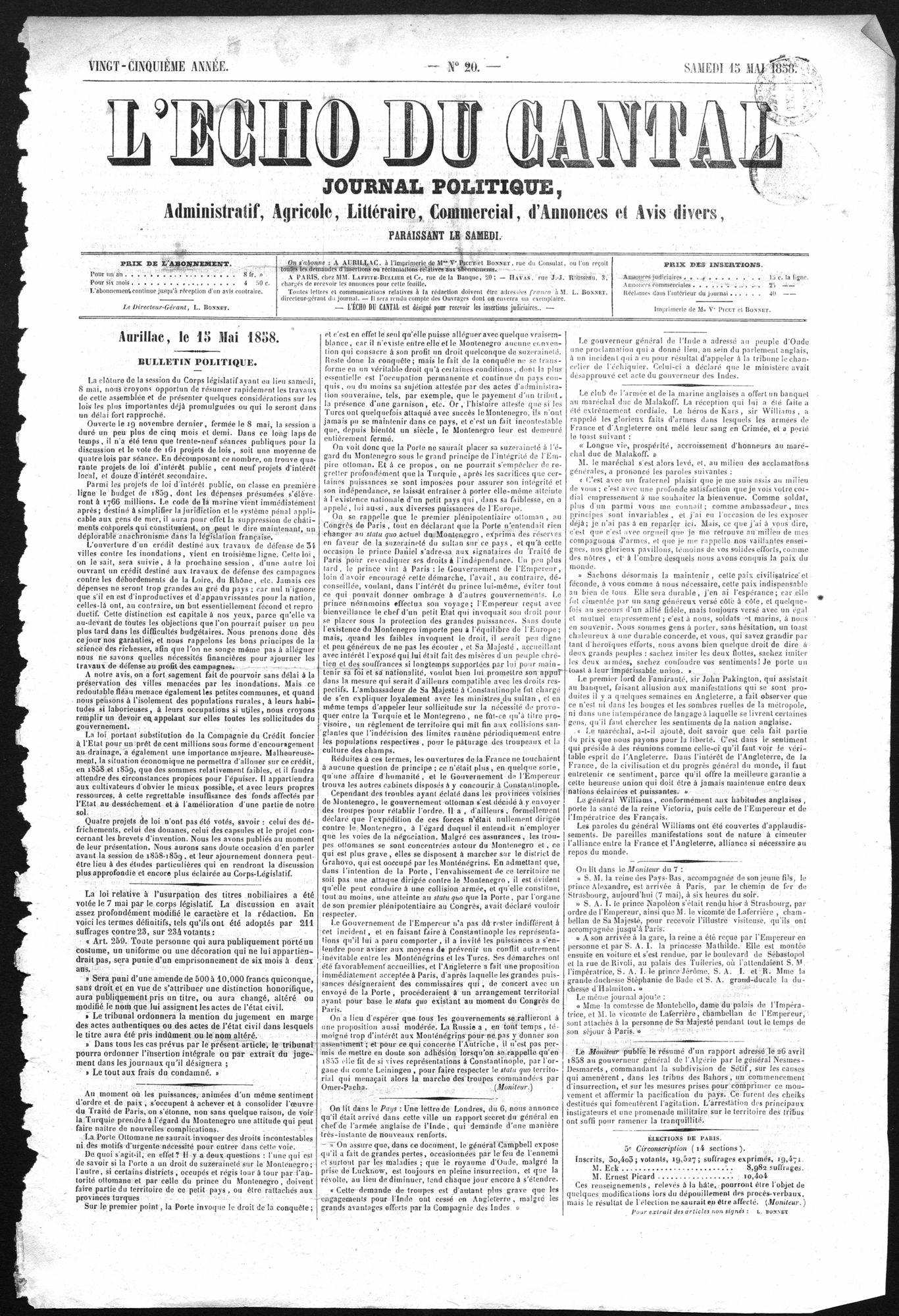 n° 20 : 15 mai 1858, 2 JOUR 7, 1858, L'Echo du Cantal, Presse numérisée