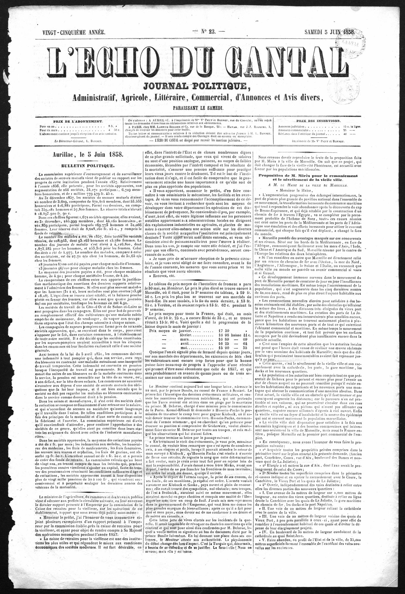 n° 23 : 5 juin 1858, 2 JOUR 7, 1858, L'Echo du Cantal, Presse numérisée