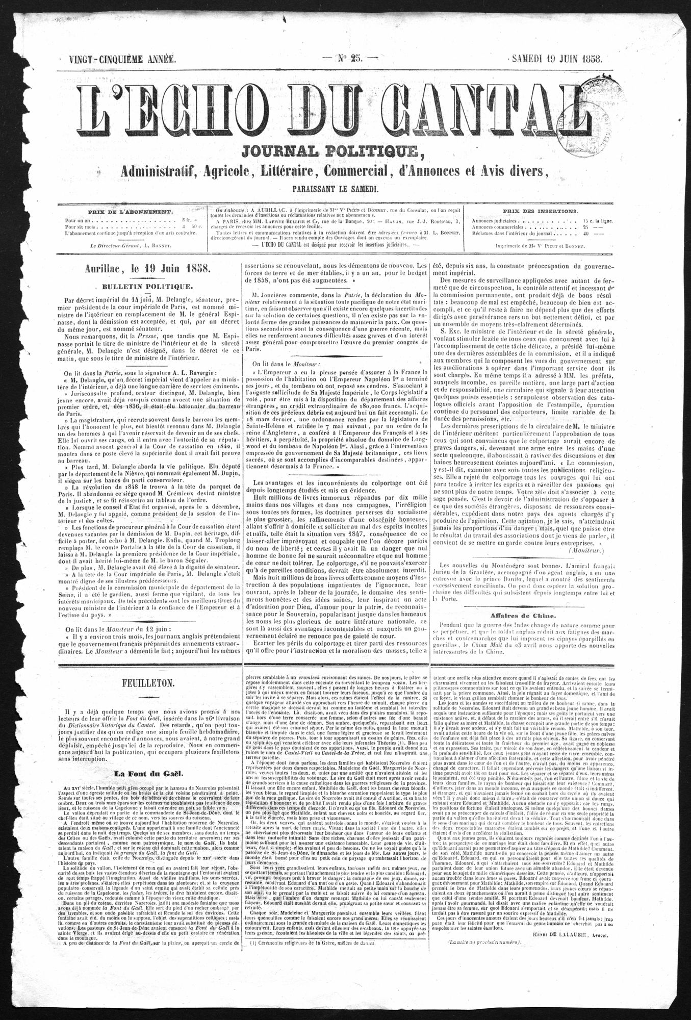 n° 25 : 19 juin 1858, 2 JOUR 7, 1858, L'Echo du Cantal, Presse numérisée