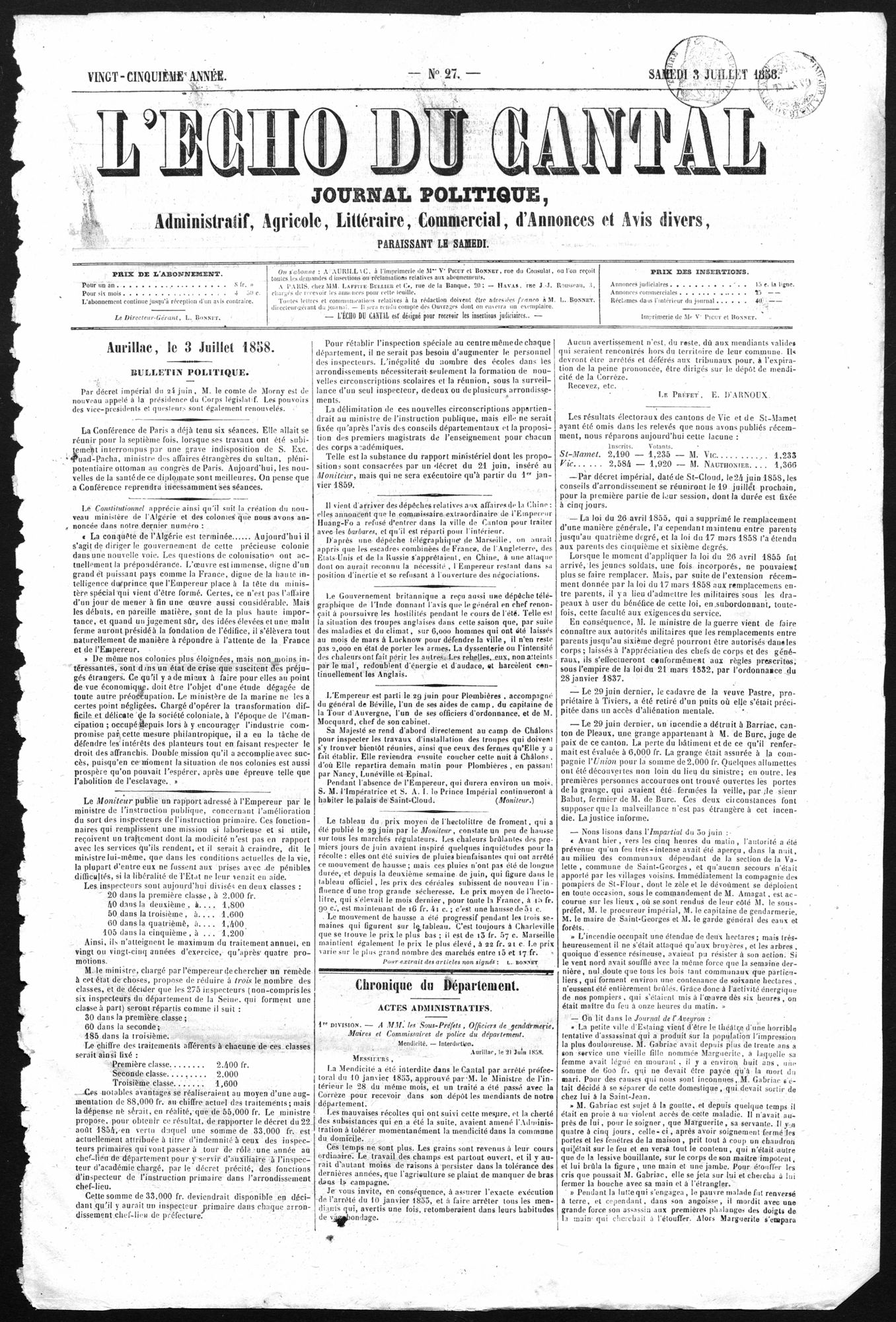 n° 27 : 3 juillet 1858, 2 JOUR 7, 1858, L'Echo du Cantal, Presse numérisée