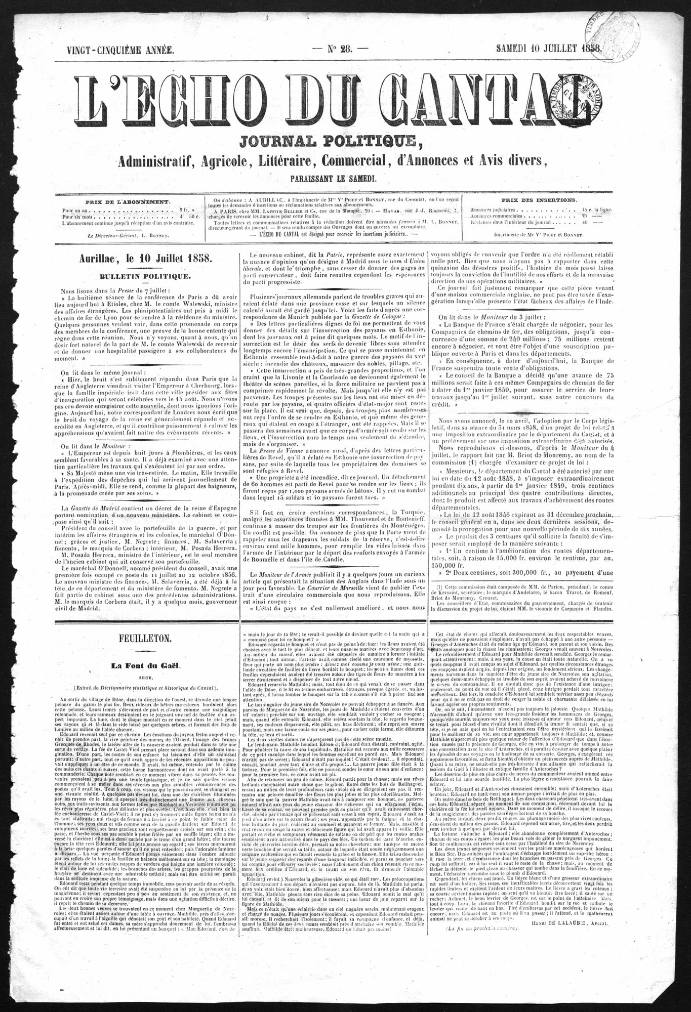 n° 28 : 10 juillet 1858, 2 JOUR 7, 1858, L'Echo du Cantal, Presse numérisée