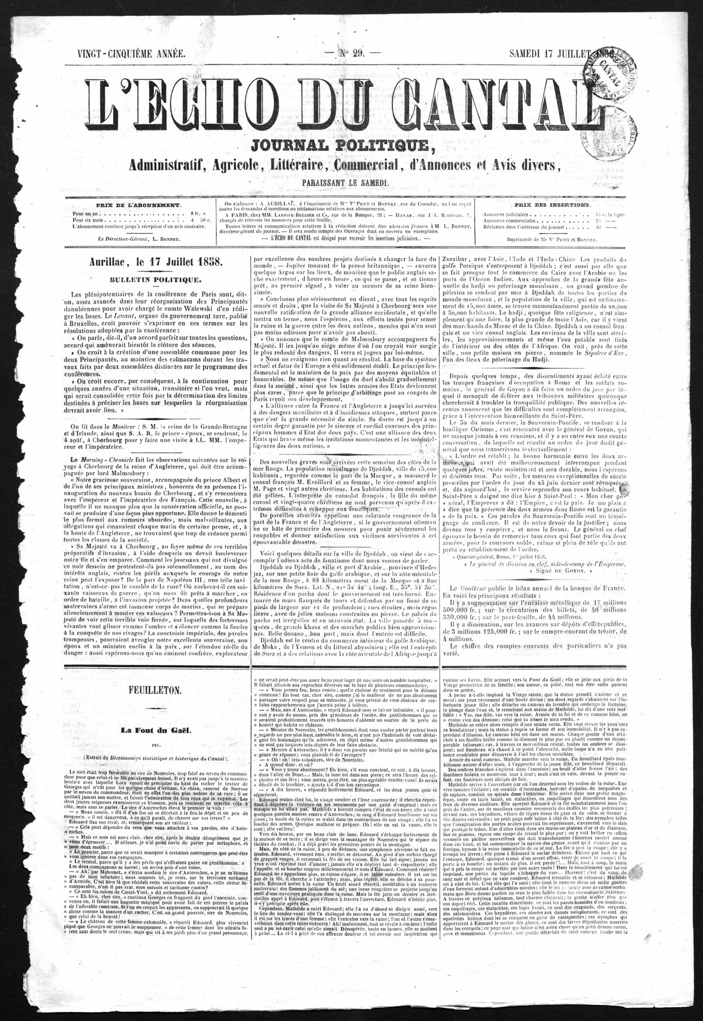 n° 29 : 17 juillet 1858, 2 JOUR 7, 1858, L'Echo du Cantal, Presse numérisée