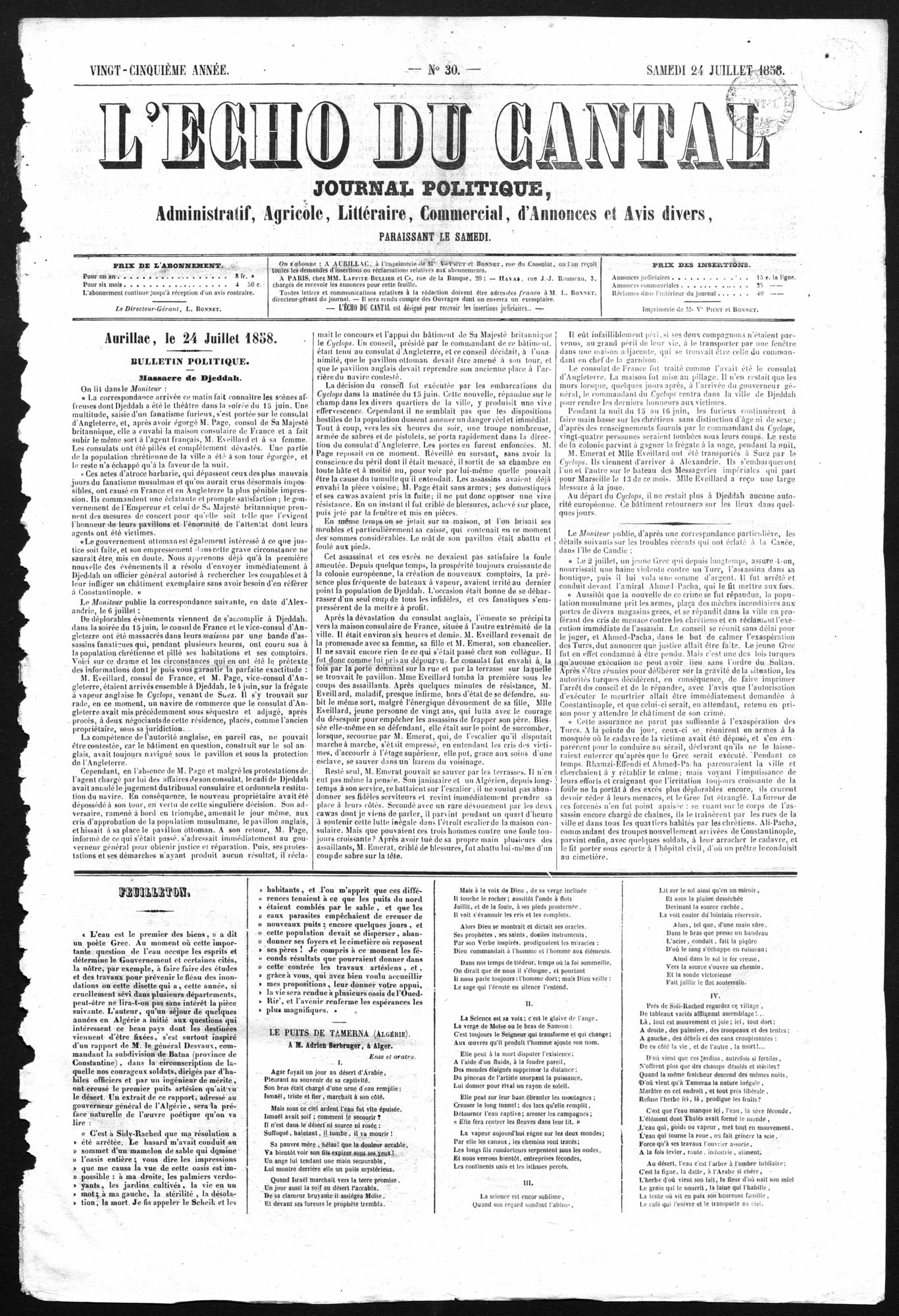 n° 30 : 24 juillet 1858, 2 JOUR 7, 1858, L'Echo du Cantal, Presse numérisée