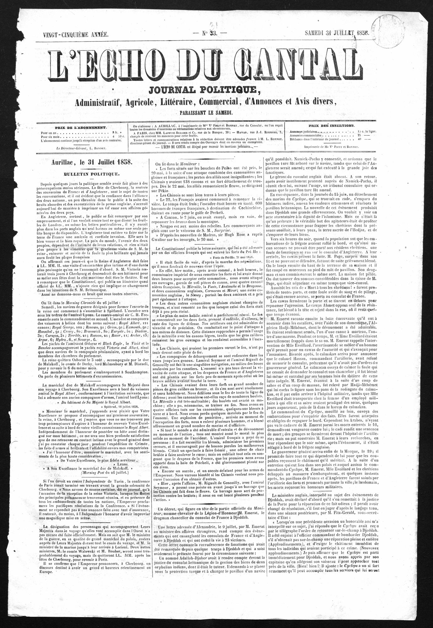 n° 33 : 31 juillet 1858, 2 JOUR 7, 1858, L'Echo du Cantal, Presse numérisée