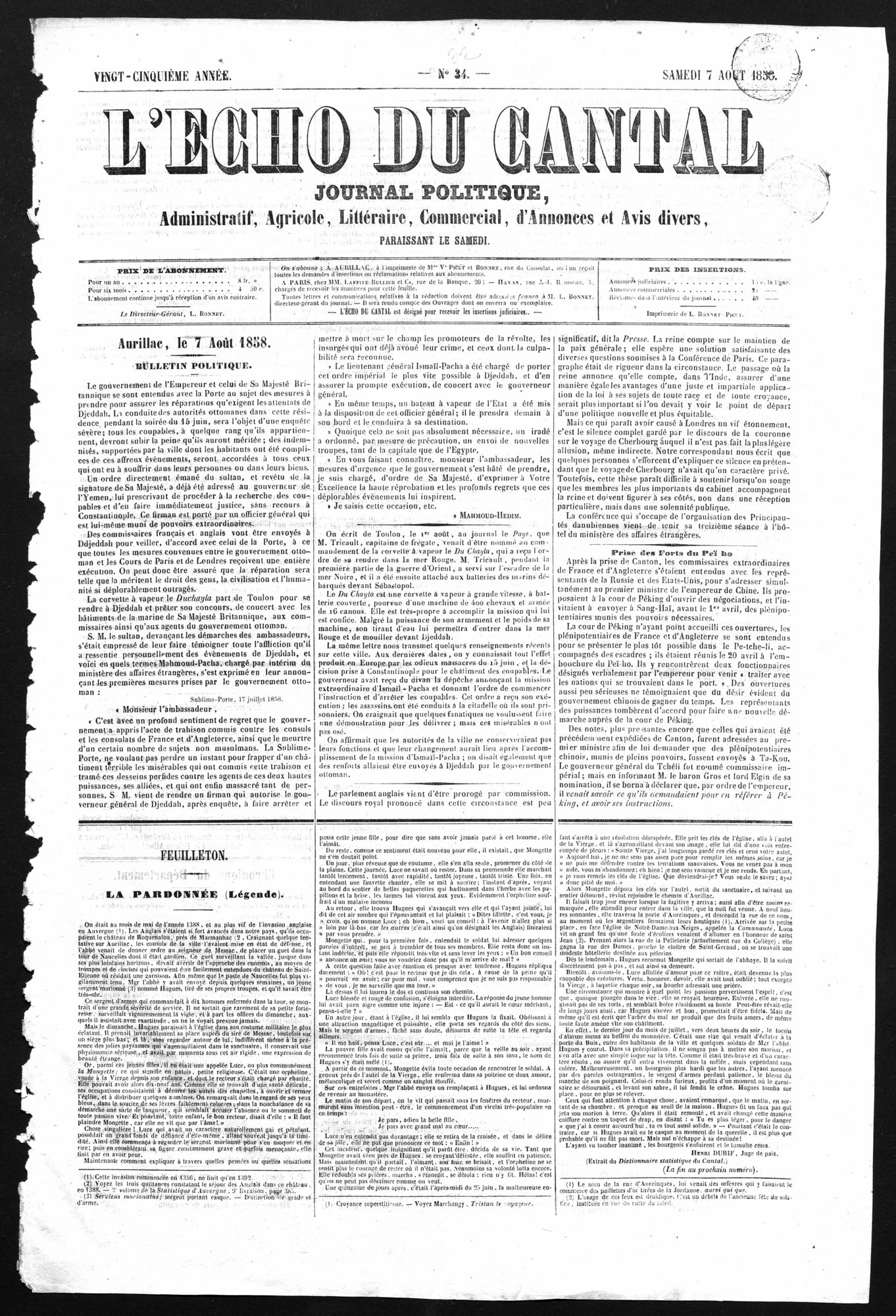 n° 34 : 7 août 1858, 2 JOUR 7, 1858, L'Echo du Cantal, Presse numérisée