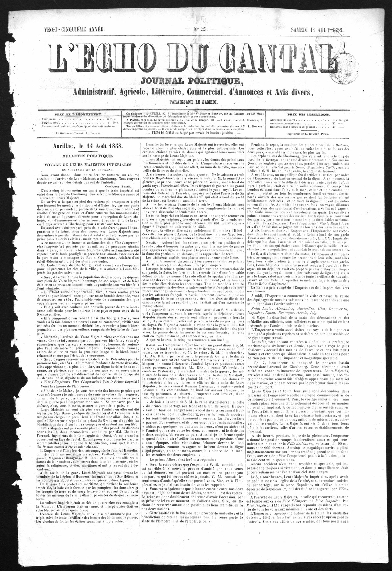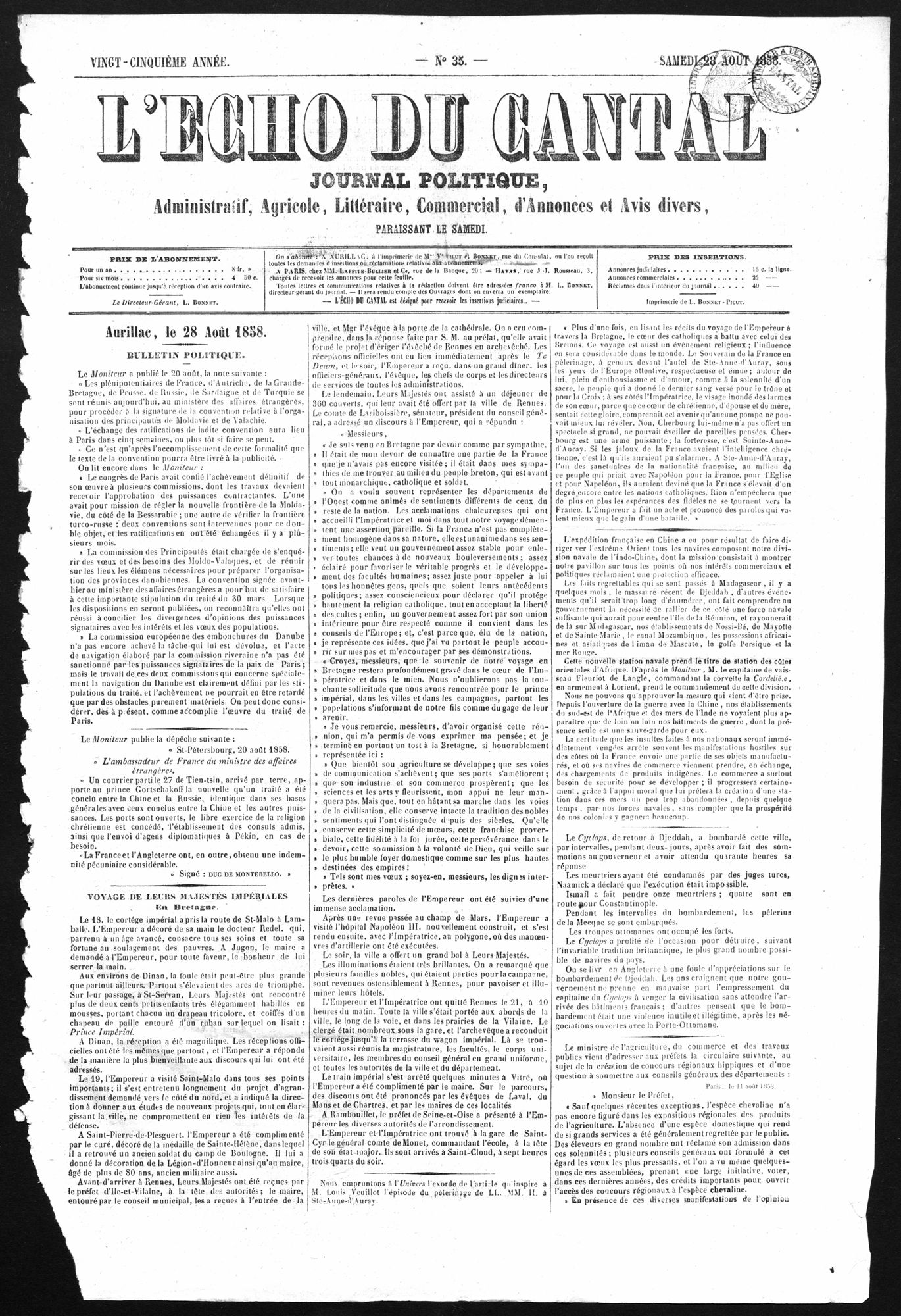 n° 35 : 14 août 1858, 2 JOUR 7, 1858, L'Echo du Cantal, Presse numérisée