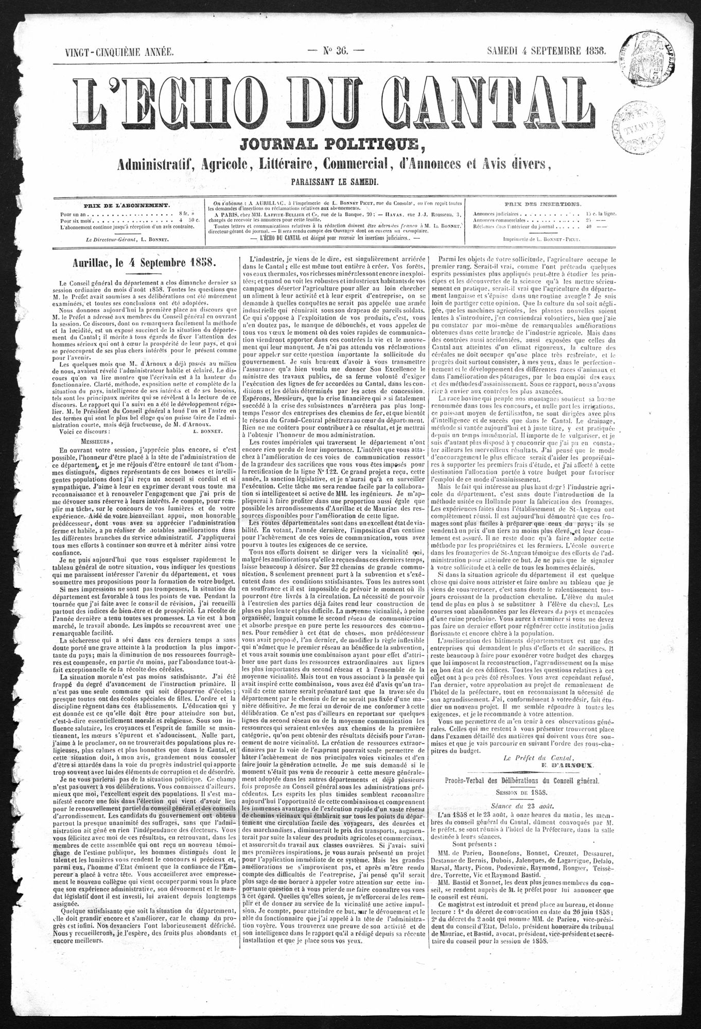 n° 36 : 4 septembre 1858, 2 JOUR 7, 1858, L'Echo du Cantal, Presse numérisée