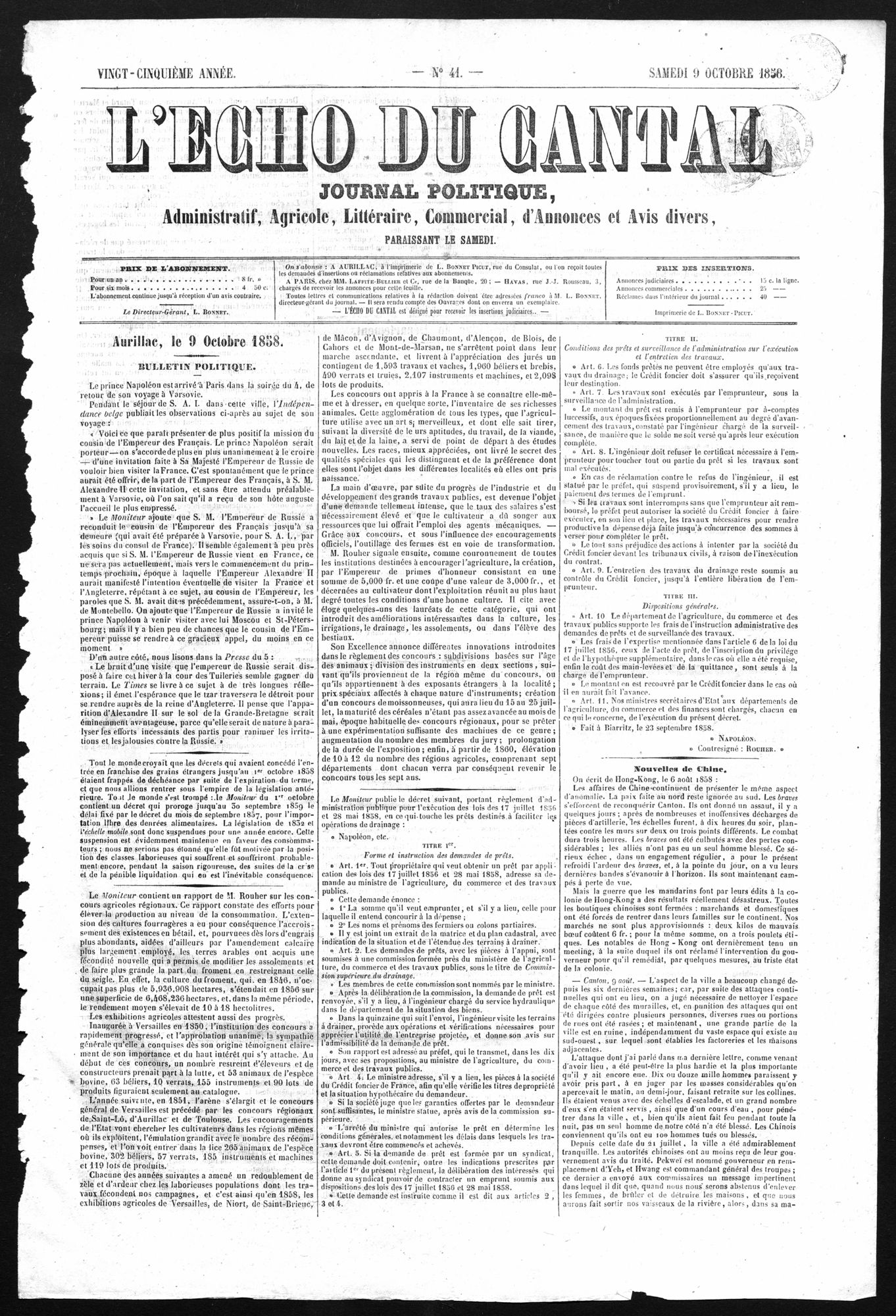 n° 41 : 25 septembre 1858, 2 JOUR 7, 1858, L'Echo du Cantal, Presse numérisée