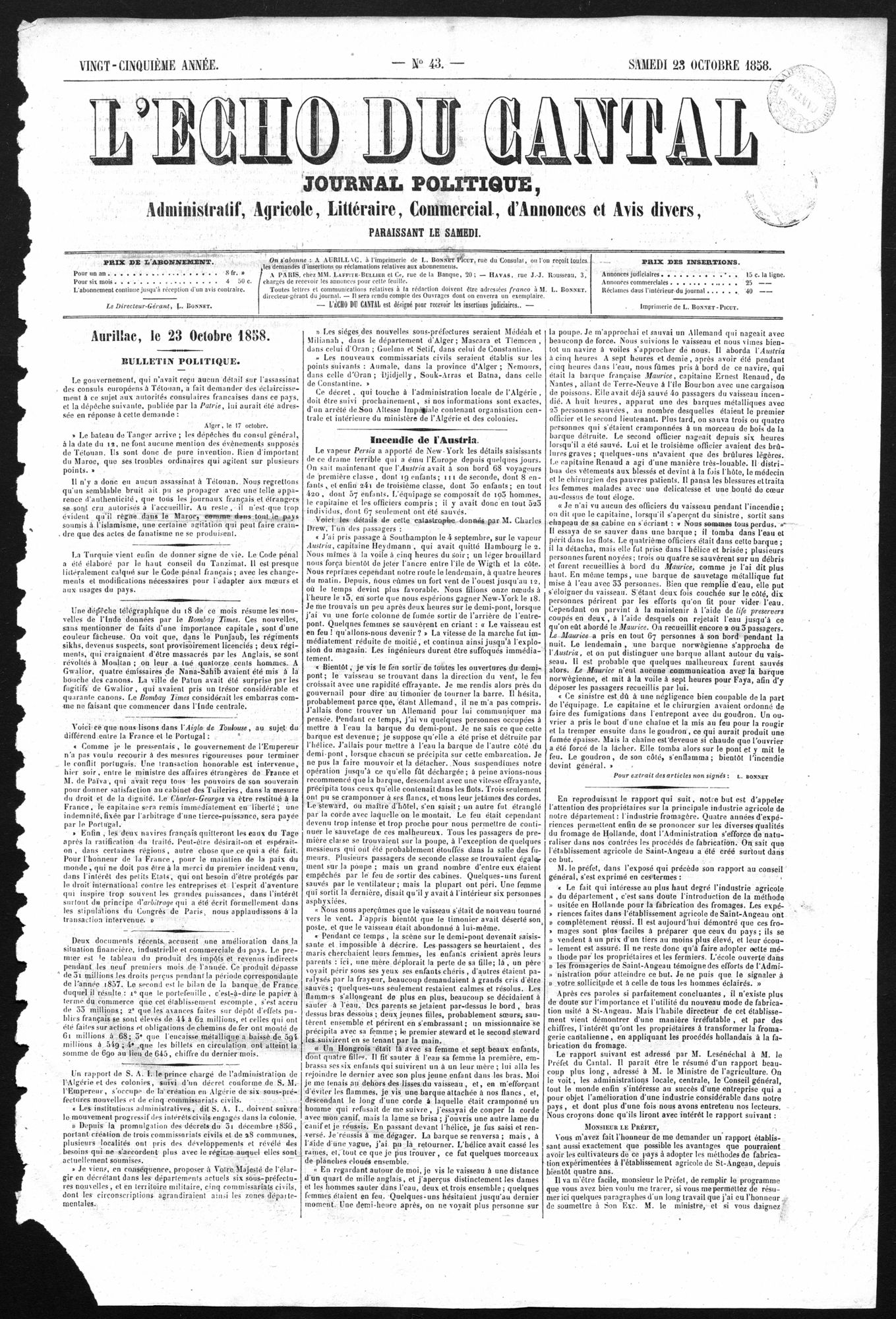 n° 45 : 23 octobre 1858, 2 JOUR 7, 1858, L'Echo du Cantal, Presse numérisée