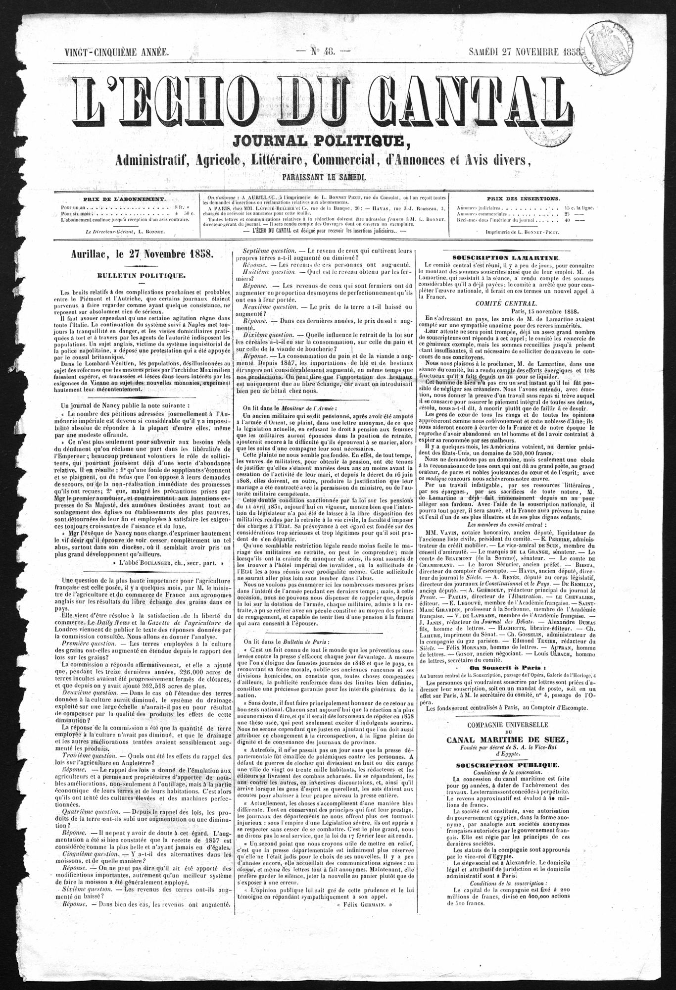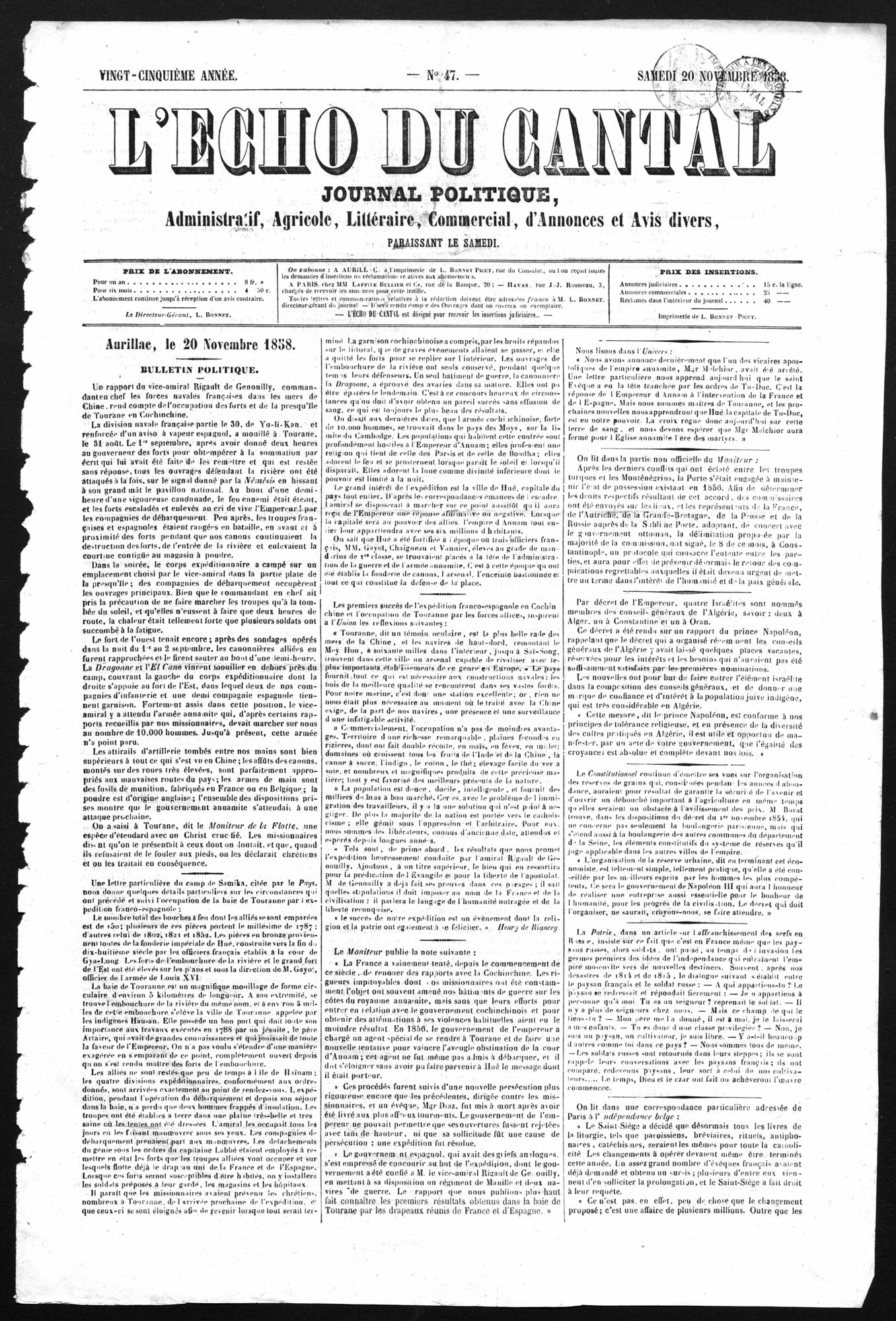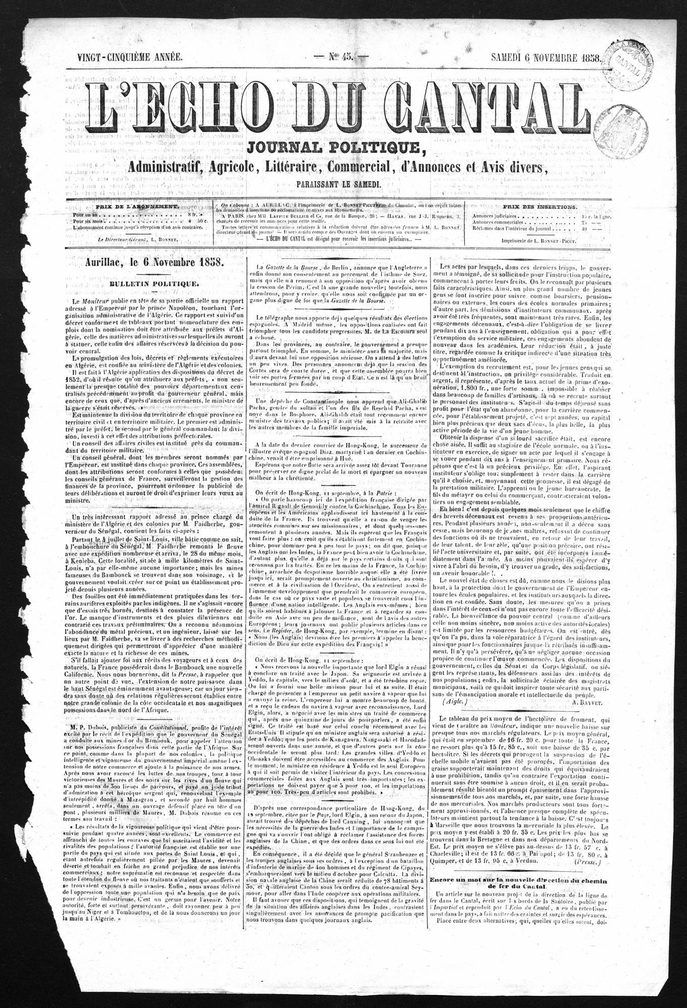 n° 47 : 6 novembre 1858, 2 JOUR 7, 1858, L'Echo du Cantal, Presse numérisée
