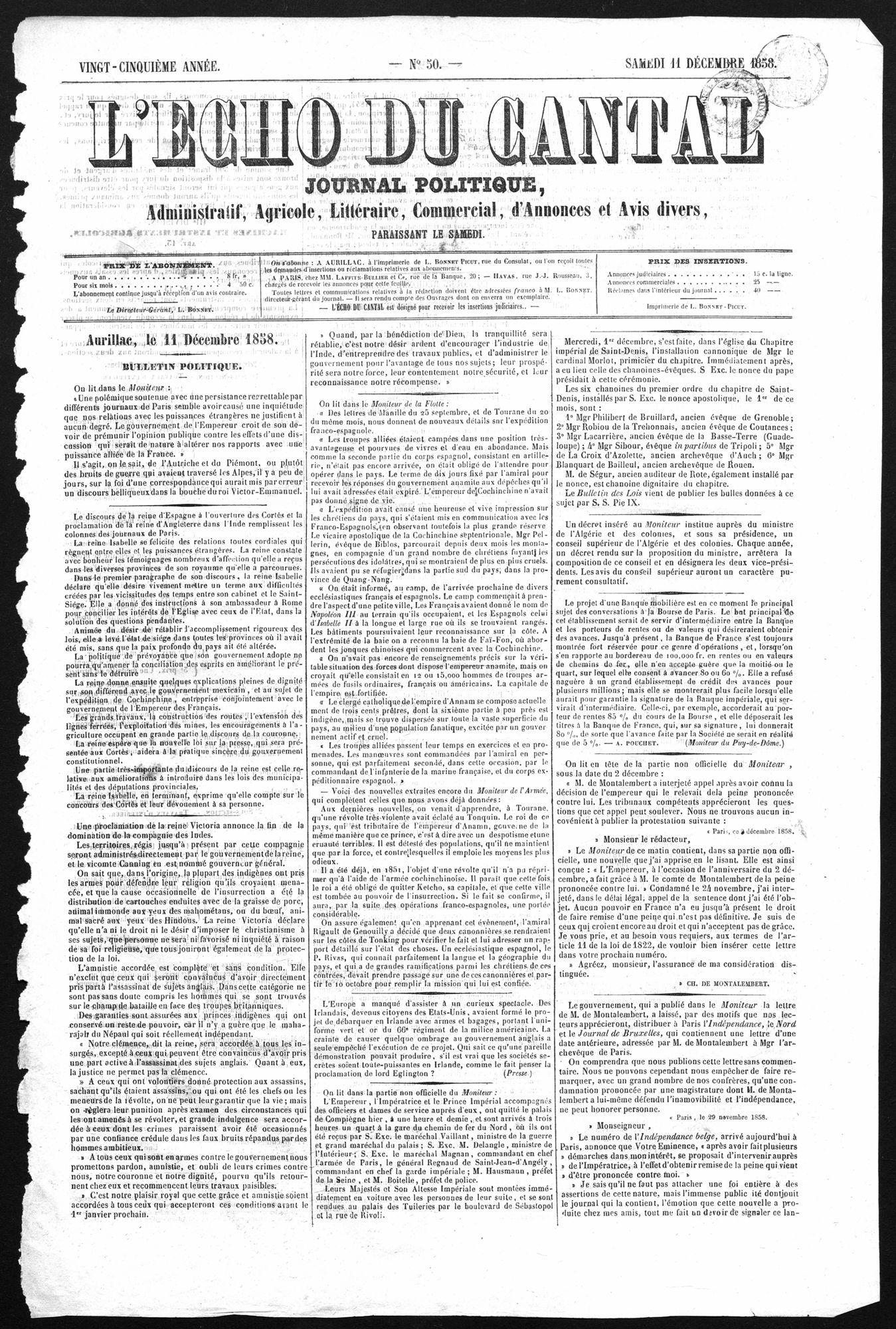 n° 50 : 27 novembre 1858, 2 JOUR 7, 1858, L'Echo du Cantal, Presse numérisée