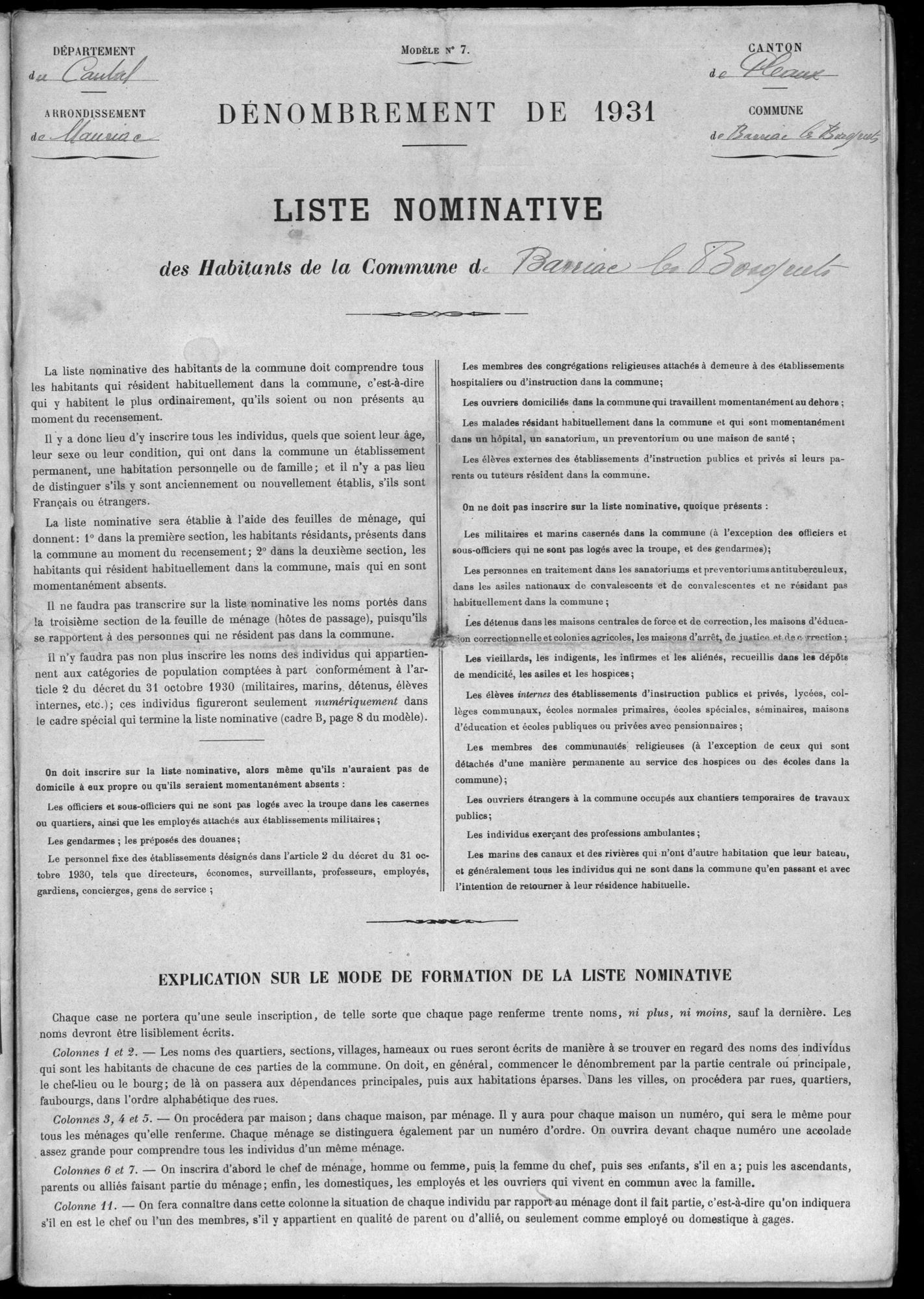 - Listes nominatives de recensement