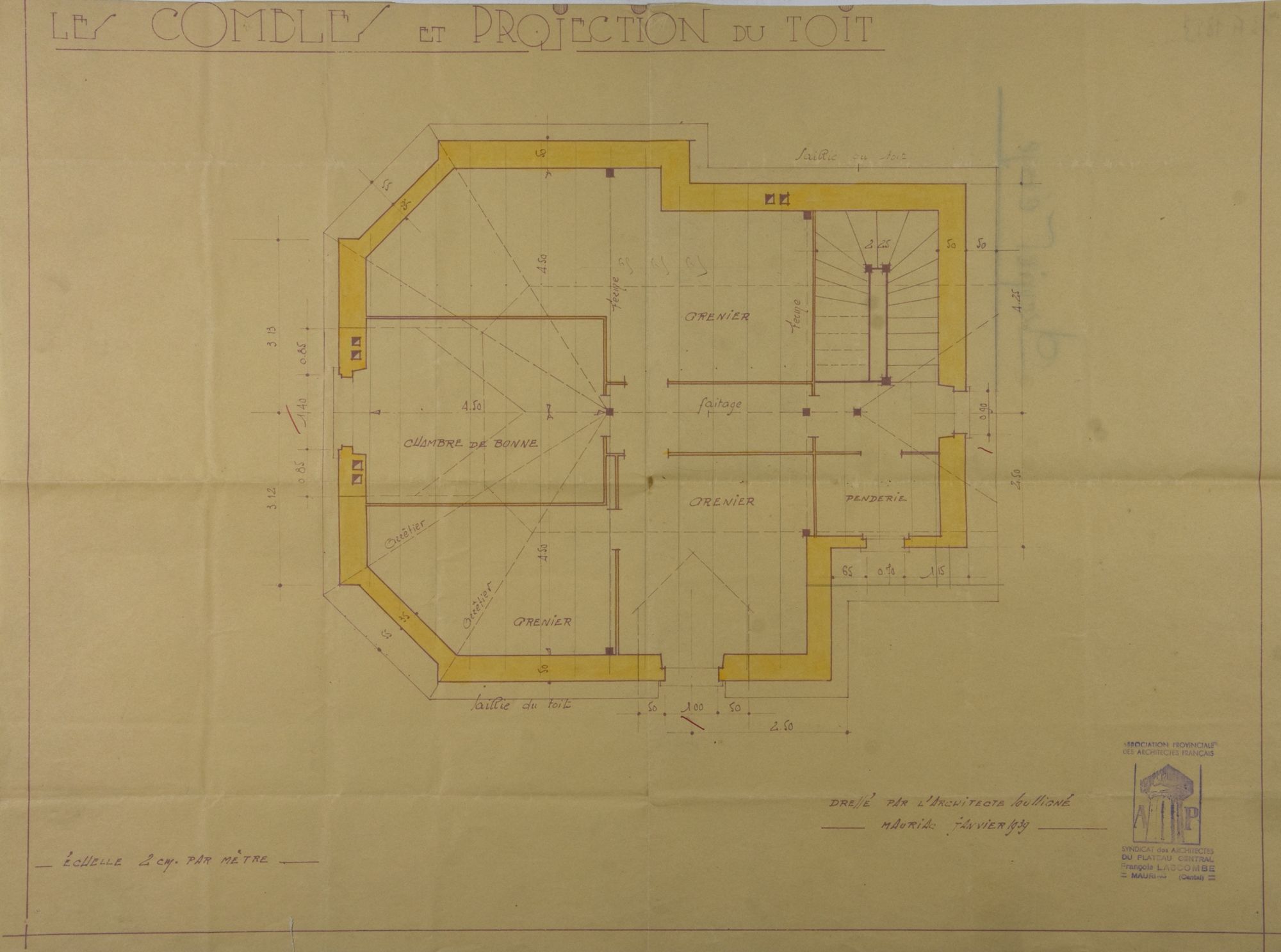 - Echelle 0.02 p. m. - 35 x 47 cm, tirage de plan et crayon.