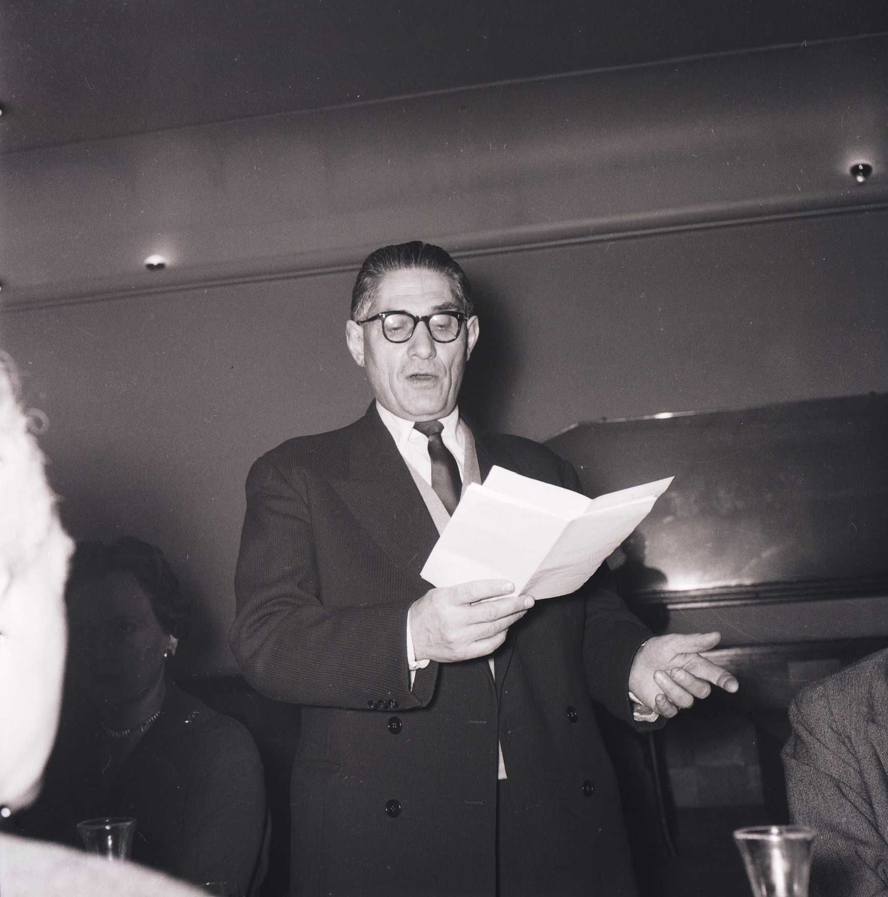 31 NUM 158-162, Banquet de la Sainte-Cécile à Aurillac : M. Paul Piales, sénateur-maire, M. Edouard Hygounenc, directeur de l'Harmonie municipale, et M. Antony Joly, député et vice président du Conseil Général.