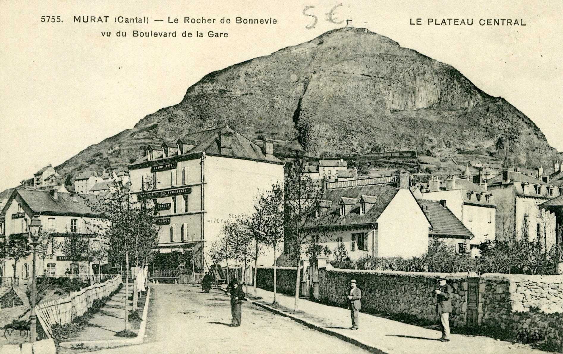 10 NUM 739, "Le Plateau Central - 5755. Murat (Cantal) - Le rocher de Bonnevie vu du boulevard de la gare". - Editions VDC. - Noir et blanc