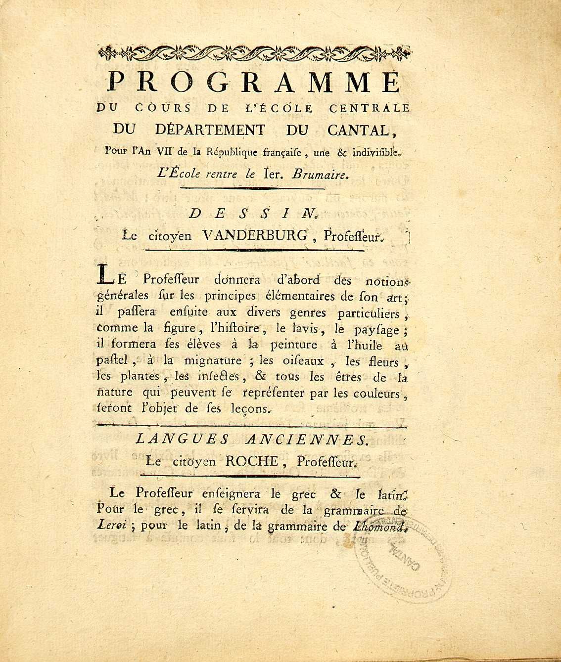 10 PH 871-877, "Programme du cours de l'école centrale du département du Cantal ; pour l'an VII de la République française, une et indivisible".10 PH 871-877, "Programme du cours de l'école centrale du département du Cantal ; pour l'an VII de la République française, une et indivisible".10 PH 871-877, "Programme du cours de l'école centrale du département du Cantal ; pour l'an VII de la République française, une et indivisible".10 PH 871-877, "Programme du cours de l'école centrale du département du Cantal ; pour l'an VII de la République française, une et indivisible".10 PH 871-877, "Programme du cours de l'école centrale du département du Cantal ; pour l'an VII de la République française, une et indivisible".10 PH 871-877, "Programme du cours de l'école centrale du département du Cantal ; pour l'an VII de la République française, une et indivisible".10 PH 871-877, "Programme du cours de l'école centrale du département du Cantal ; pour l'an VII de la République française, une et indivisible".