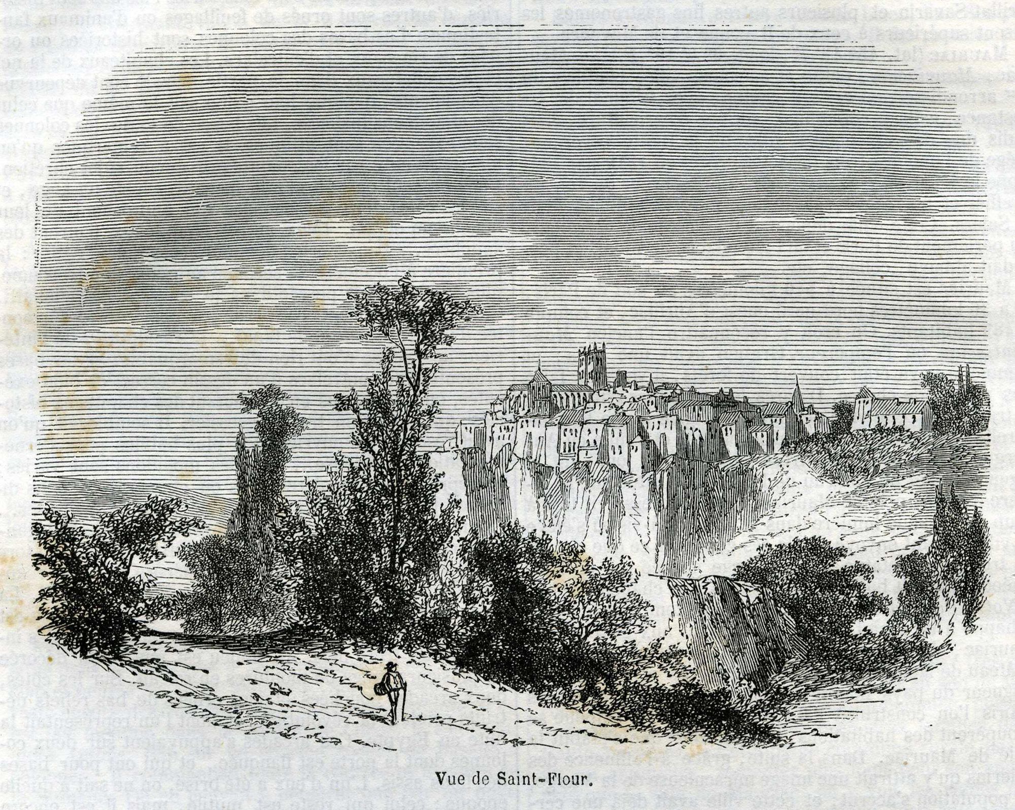 27 J 196-55, "Cantal. La France illustrée, géographie, histoire, administration et statistique", par V. A. Malte-Brun : "vue de Saint-Flour". - Noir et blanc